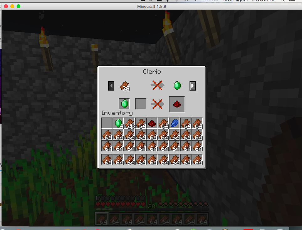 The picture should explain it all. The reason redstone was an option was because a few pages to the right, I could trade 1 emerald for 1 redstone