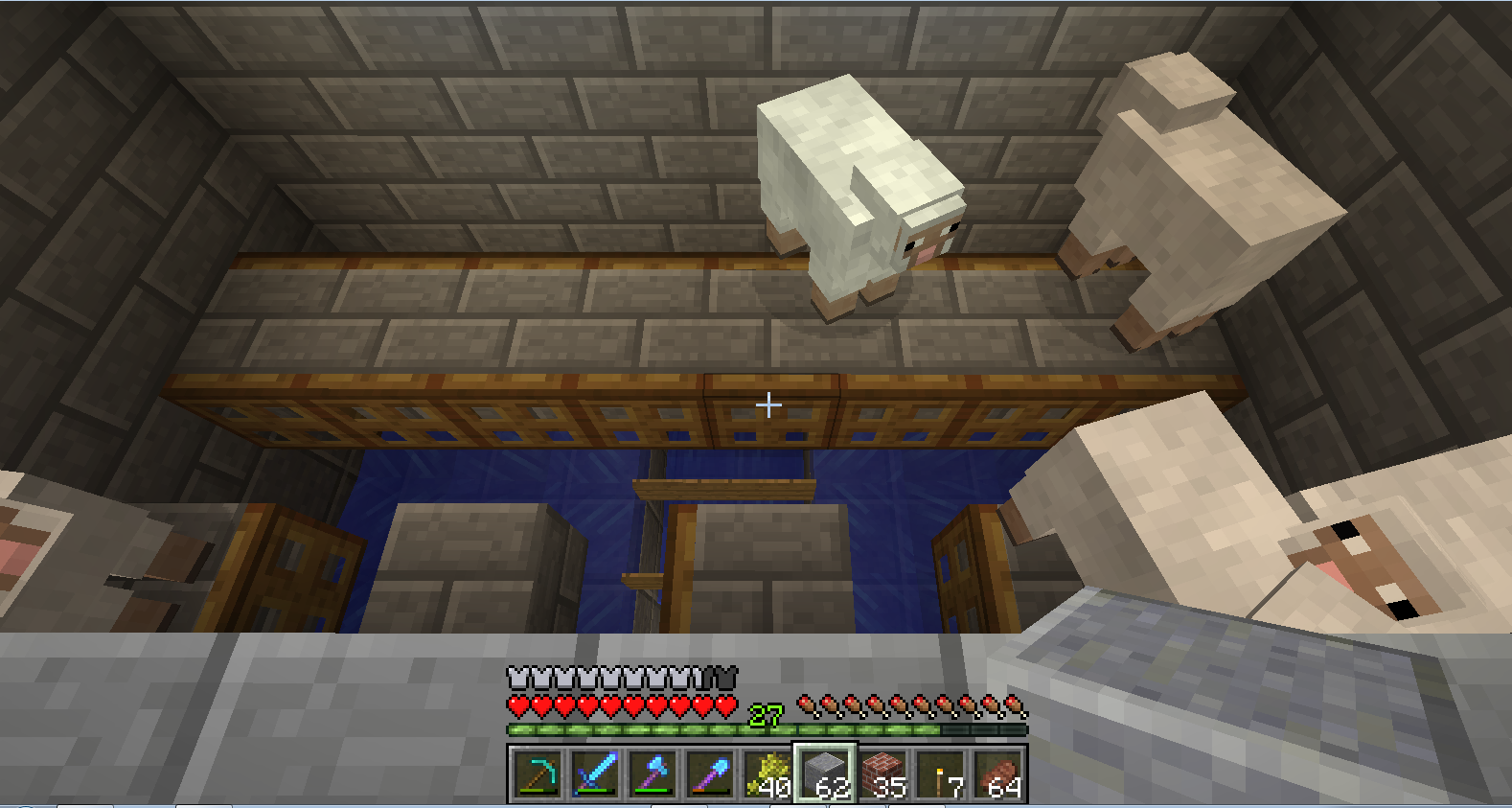 I have a farm where adult sheep sit on top of trapdoors attached to blocks so the babies fall down, when I load the game the adults will suffocate in the walls around it.