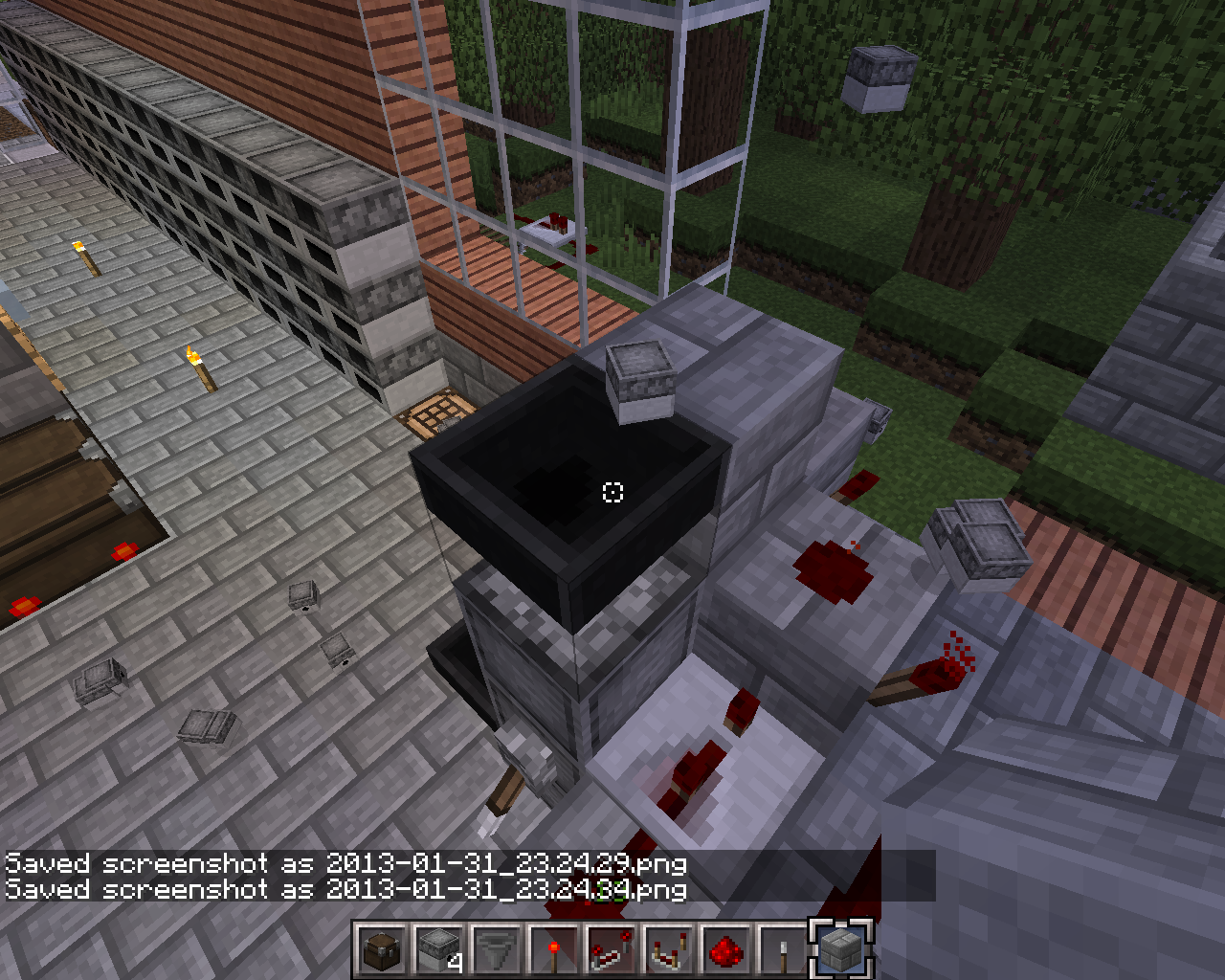 i tried to build a new version of the item elevator cause the old easier and better version wont work annymore.and everytime the item reaches the highest hopper they simply pop out annyplace instead of going in the hopper beneeth.