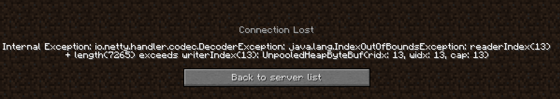 Whenever two players are on my server at the same time, one of them get kicked, and get this error message; https://i.gyazo.com/ca3f248c644bb1d66ce1ea3d1bc85413.png