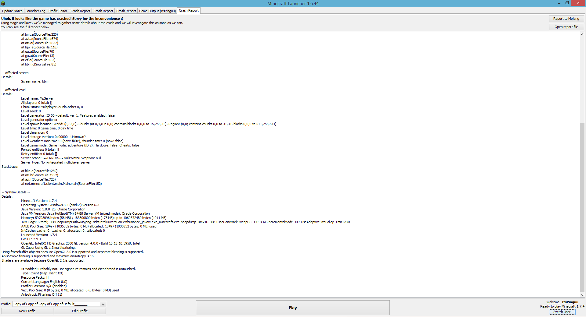 ⚠️ Your Minecraft version is outdated. We currently take issues for version 1.8.8 and the latest snapshot of the game.