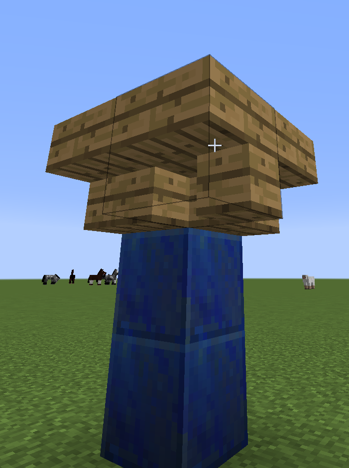 2. Plase two or more upside-down stairs perpendicular, leaving one empty space where they would intersect. (See screenshot "Setup")