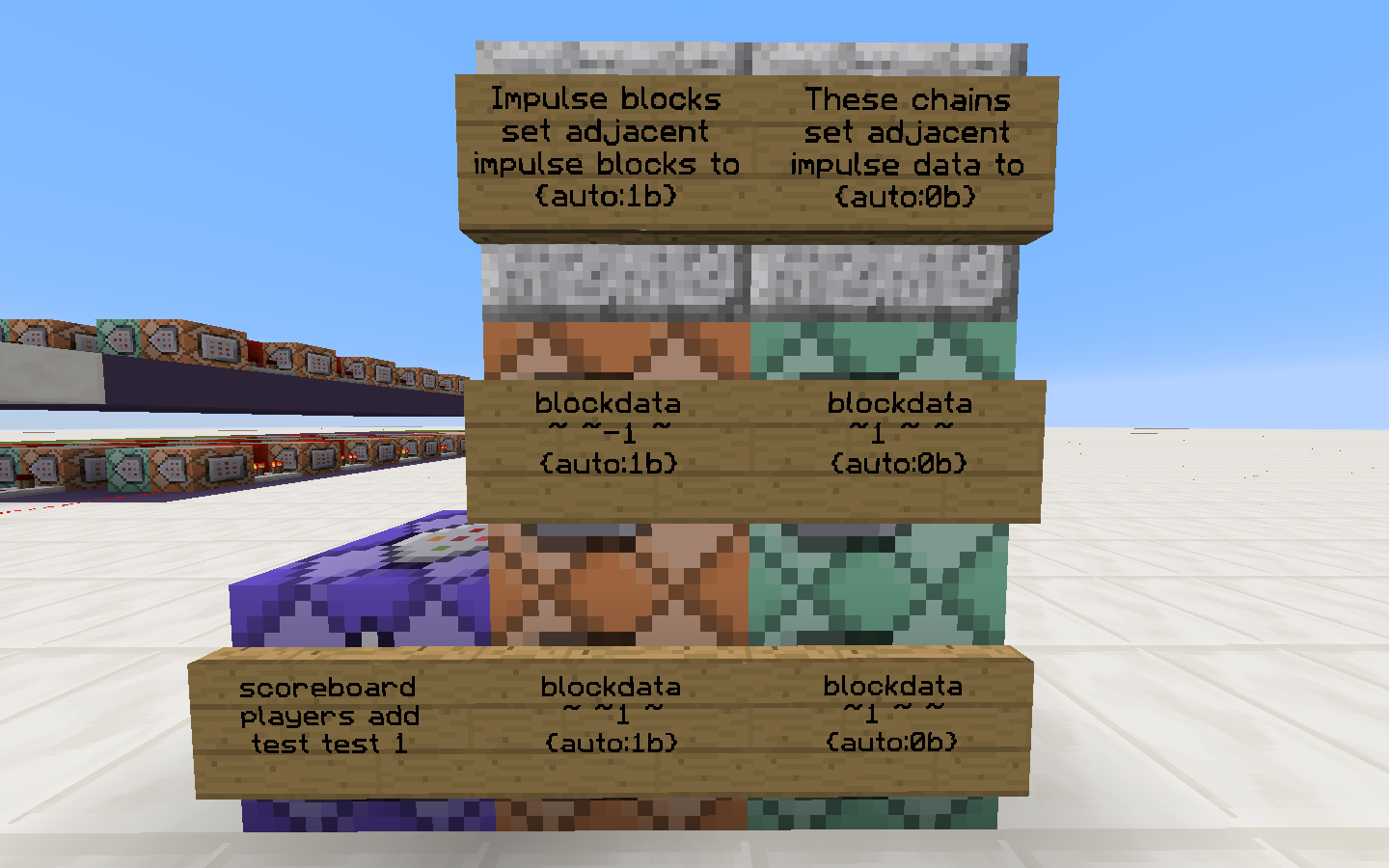 Once the clock is activated, set the 'redstone needed' to 'active' in one of the impulse blocks (doesn't matter which one). After activation, watch the test dummy score go up, but rapidly slow down in the rate of increase, until it comes to a full stop. When the score increase freezes, the game will start lagging FPS-wise, and will eventually freeze as well. Consequences of this will be that when the player relogs, the chunk resets to an older state before the 'redstone needed' button was set to 'active'.