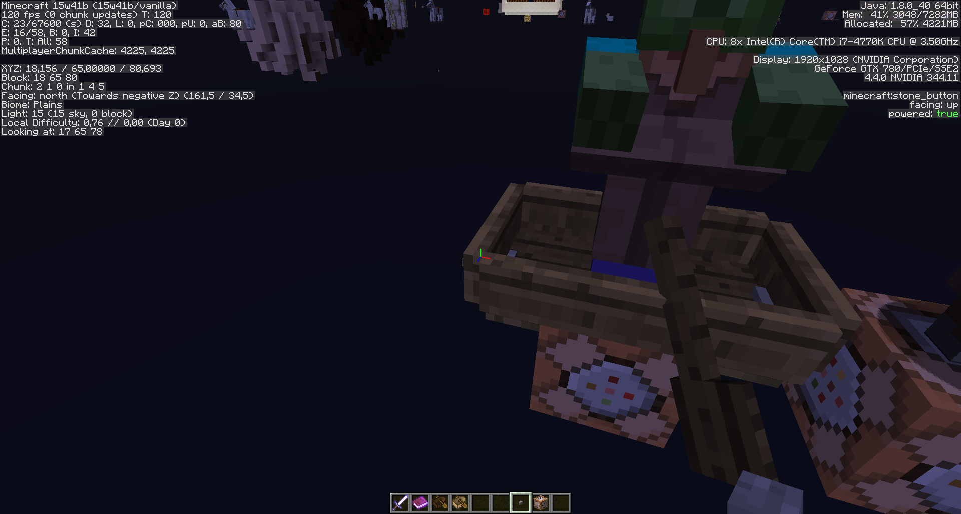 /summon creeper ~ ~2 ~ {Passengers:[{id:"boat",Type:"oak",Passengers:[{id:"boat",Type:"oak"}]}]}2. Result