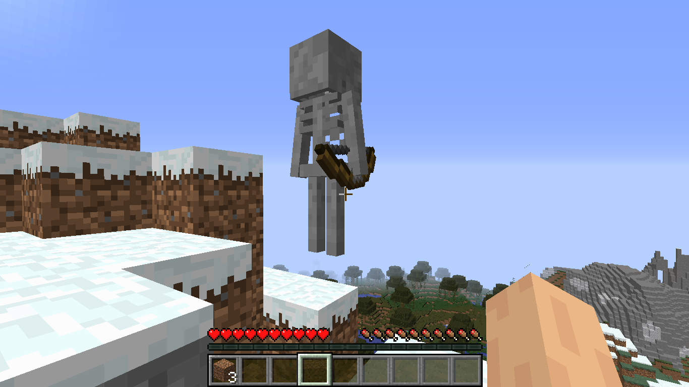 I was flying around with the elytra and I saw a skeleton. I wanted to dive bomb him/ smack him while I was flying. I hit him, and I saw the Crit particles, but no damage was done. so then I land on him, and he is just standing still, facing south, like mobs with the NoAI tag do. And he doesn't attack me. I was in an extreme hills biome. Also, I was in peaceful mode. I also found another one nearby. And when you run into them, you get pushed back.