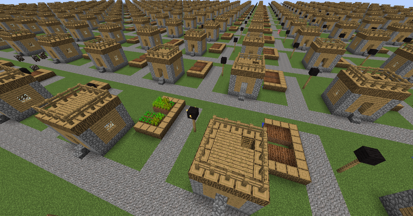 After I logged in for a second time on a superflat world, the village started glitching. It would repeat the same chunk over and over again. If I moved my character, it would mainly go back to normal, but, all the things that I built and the village are gone.