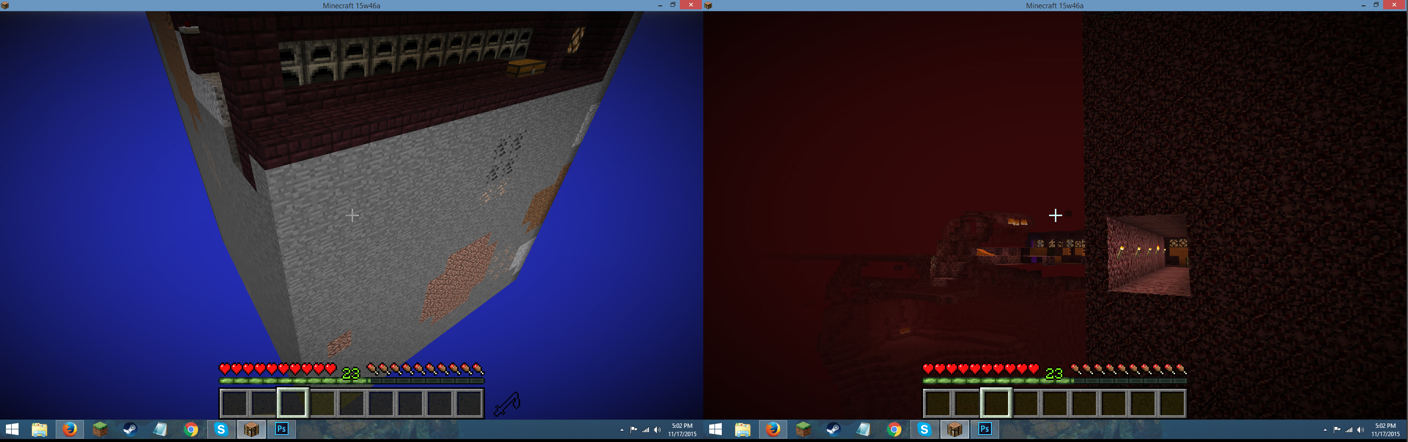 On a SMP server, I am stuck in a pair of connected Nether portals. I constantly get teleported between the two dimensions, snapping back to the position of the portals even after moving. I also receive suffocation damage once per teleportation, and the change in the hunger bar and stack size after eating food only becomes visible after a dozen teleportations or so.