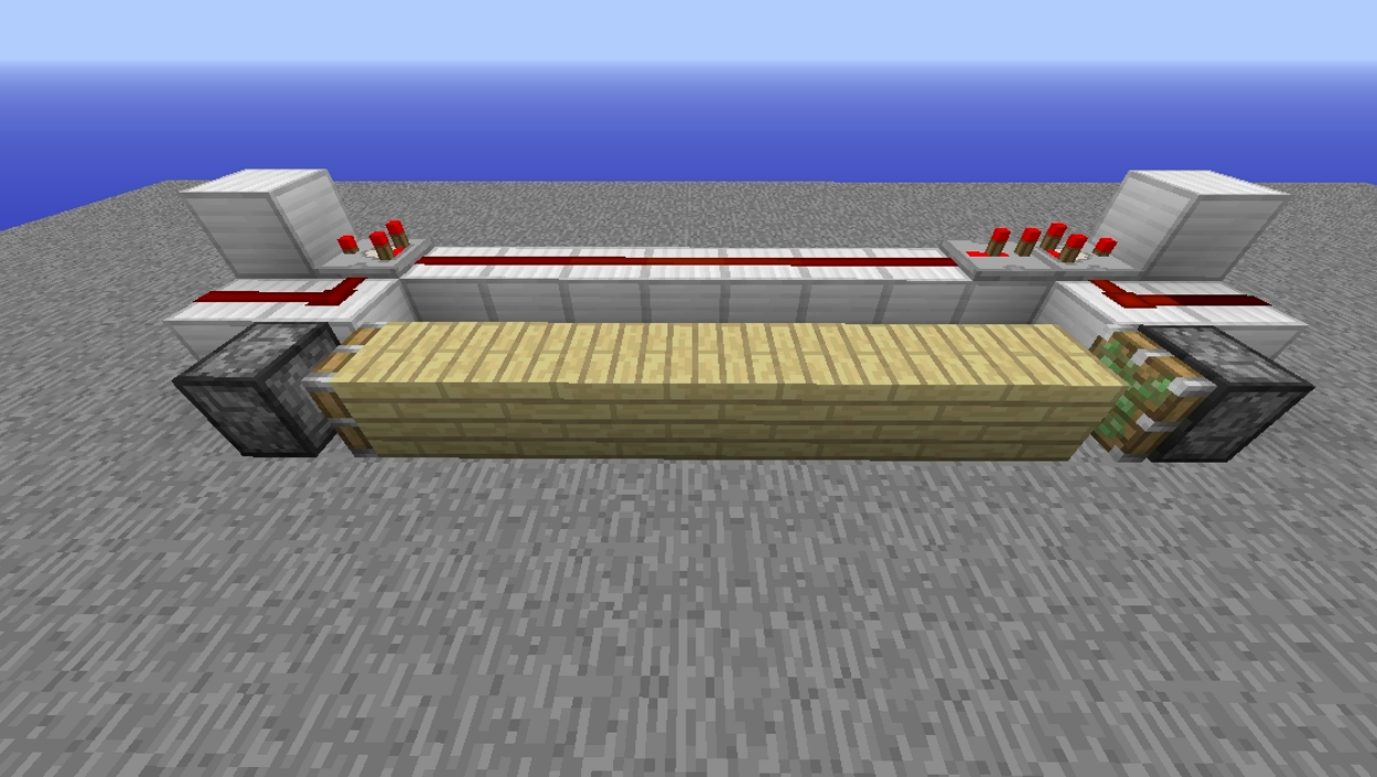 When pistons are powered and move blocks, both the pistons and the blocks don't render properly. The 1st photo shows a normal behaviour, the 2nd to 3rd show the render error and the 4th one how to reproduce the setup used.