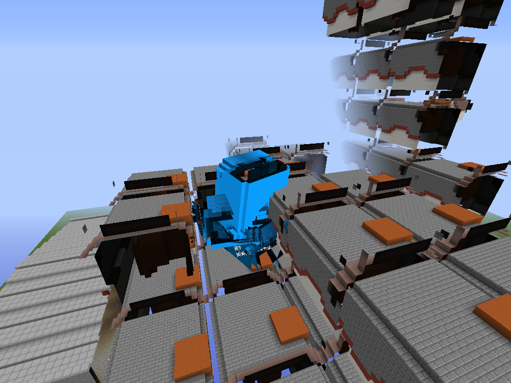 That massive orange mess over there? That's another player. There are actually 6 layers to those squares, two for arms, two for legs, one for the head, and one for the body. Note that different skins show up in different colours, mine is a dark-oak shade of brown.