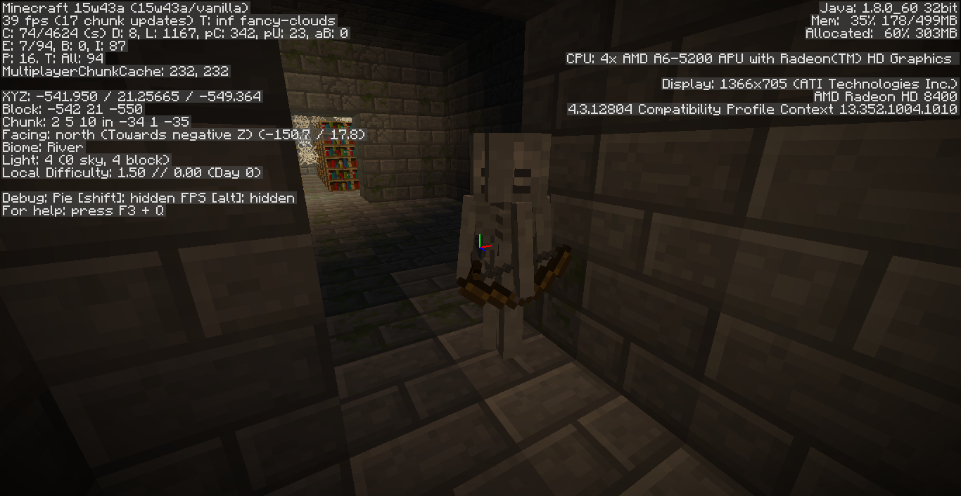 sometimes mobs spawn in a 1 block space but with many mobs inside of them. This mainly includes creepers, zombies and skellys that ive seen. The screen shot shows where i saw 2 skellys in 1 spot in a stronghold. They only move when either dropped or when they see a player