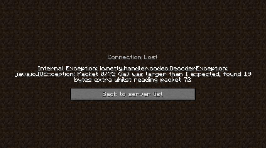 Connestion lost with server on joining. This didn't happen immidiately but a few minutes later when i tried to explore already created land with a lot of passive mobs in it.