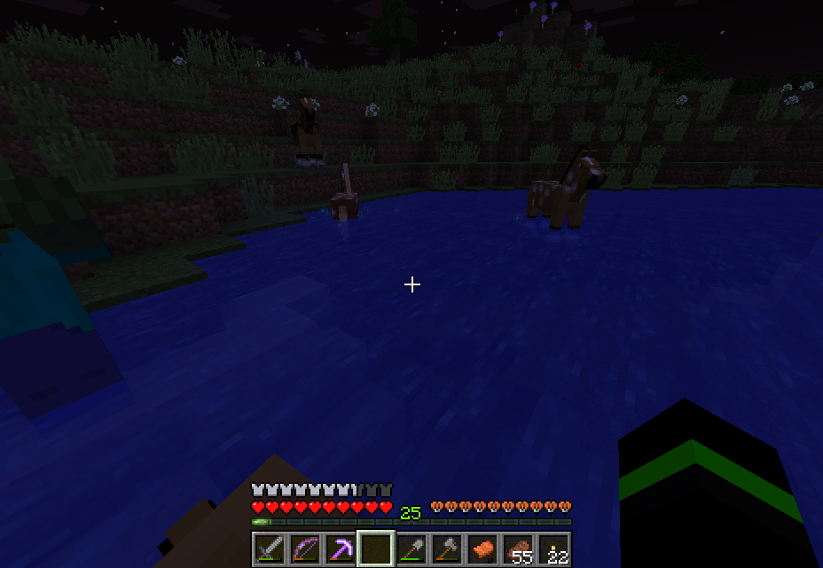 Can climb on horses but they continue to walk around while I'm on them as if I never had. They never try to kick me off, never let me open the horses inventory, and still swim in water where both the horse and I should sink. Pictures below show timestamps as well as the horse with me on it in more then 2 block deep water.