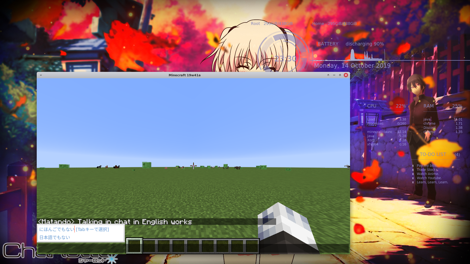 Chatting in Minecraft is an essential feature for rich multiplayer experience. I believe that the core part of Minecraft gameplay is online collaboration with friends and world-wide players. To this end, chatting in our native languages significantly lowers the learning curve for beginners and boosts fun for experienced players.