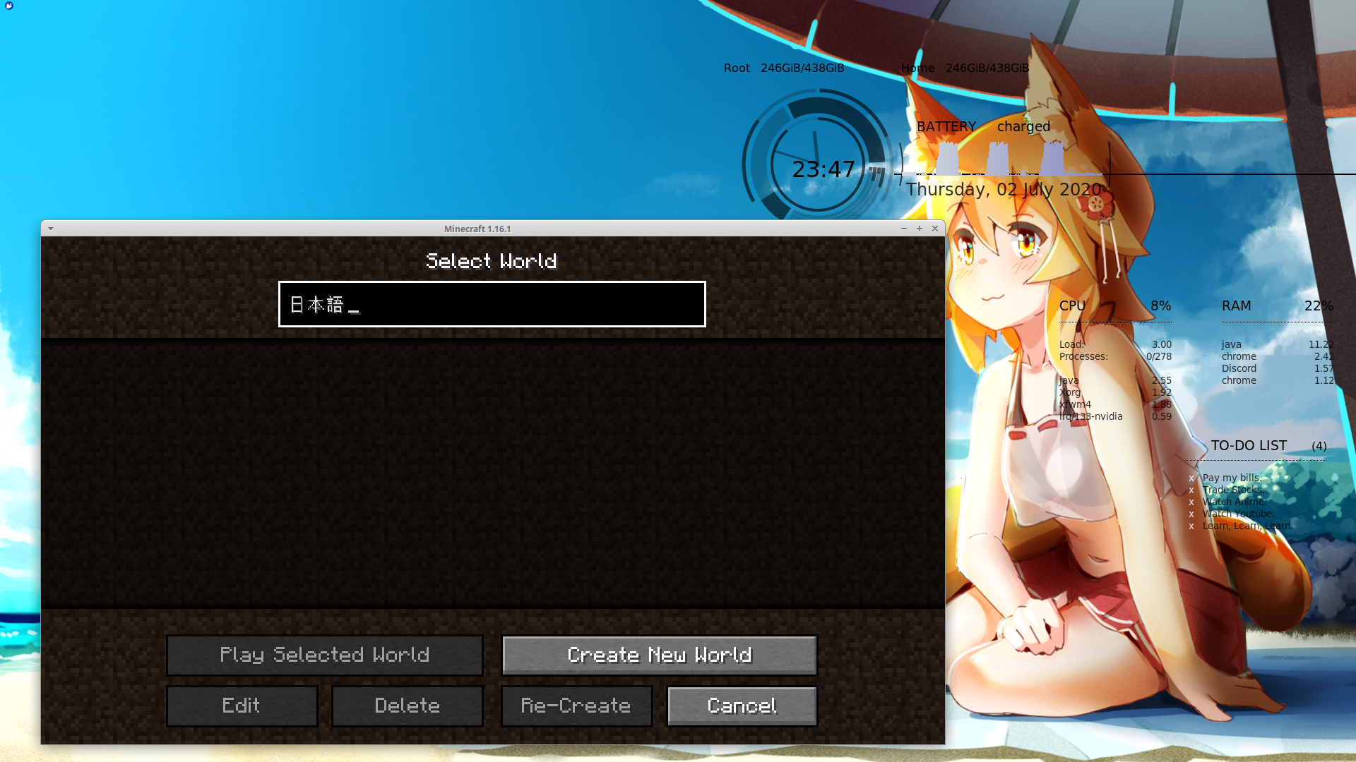 Send a patch to LWJGL to add a cross-platform IME API like SDL.https://wiki.libsdl.org/Tutorials/TextInputUpdate LWJGL of Minecraft.Patch Minecraft to:
