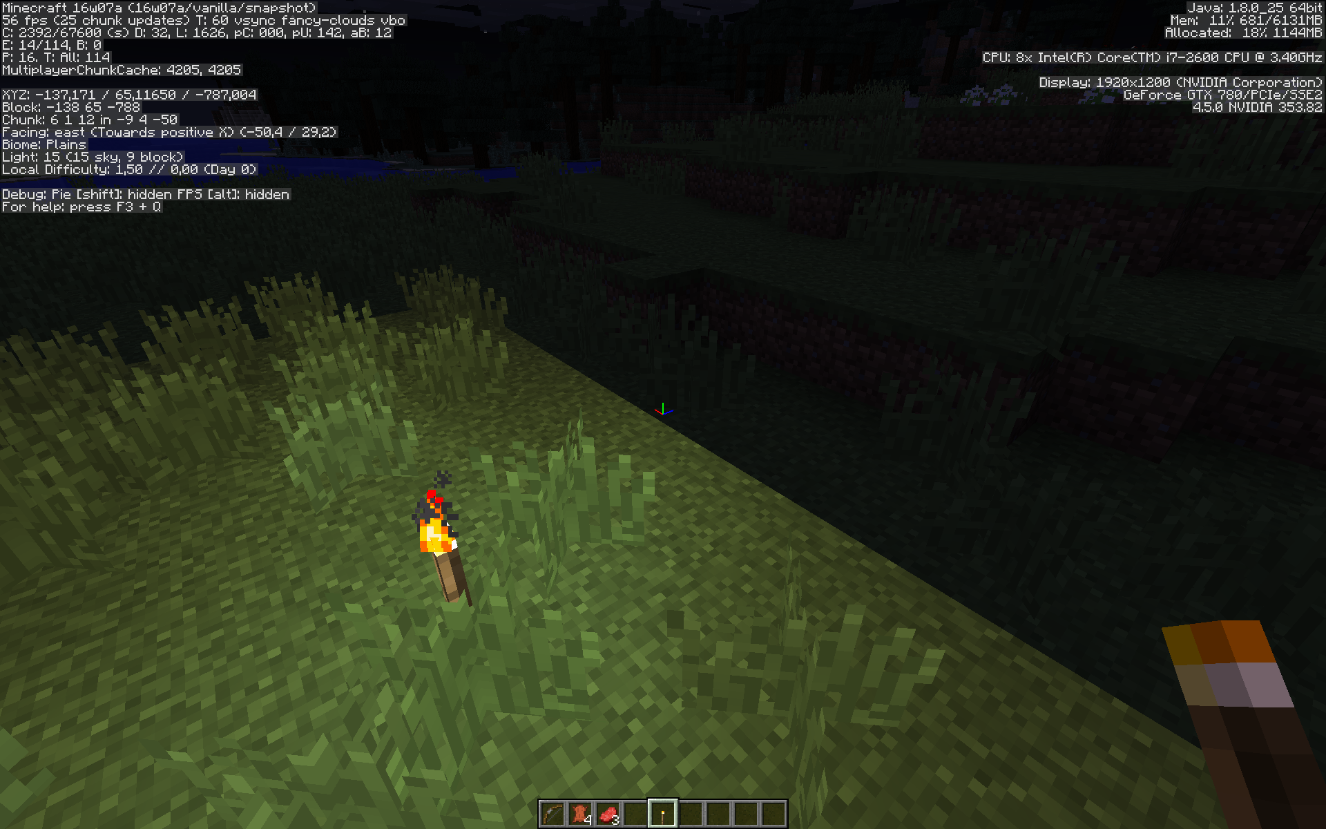 I added two more screen shots for this. A before with torch and then after the torch is removed. It is very easy to reproduce with the 16w snapshots. I wish this was voted on more.