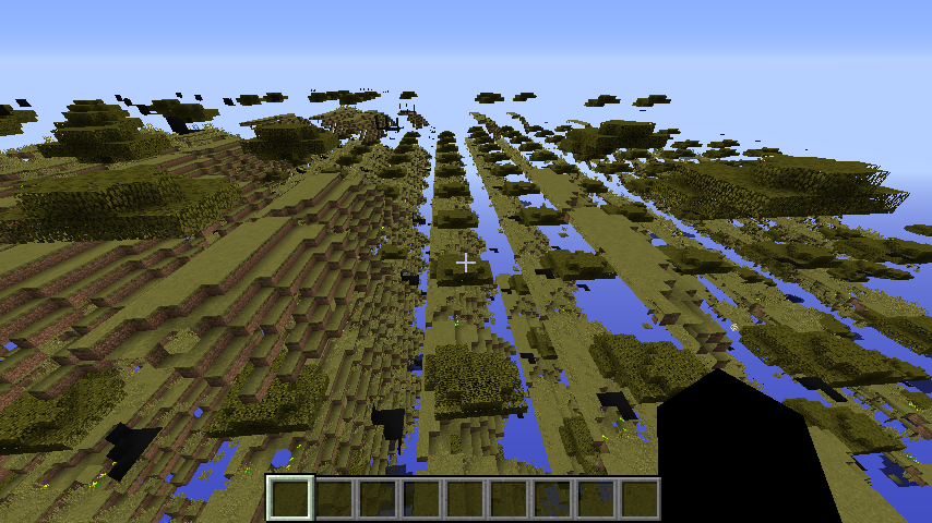 Upon loading into a newly generated world, I can only see a glitched or bugged version of what seems to be a single chunk. The glitched terrrain is false, and can be moved through. Underneath the false terrain is what seems to be the actual terrain, which you can walk on and destroy. Placing a block fixes the area for a bit.