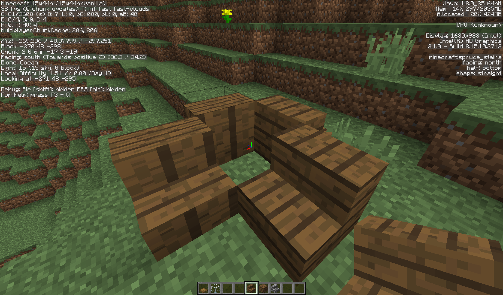 While creating a adventure map i saw that the stair texture was bugged for cobble and all wood stairs. (possibly quartz) The texture seemed warped and distorted.