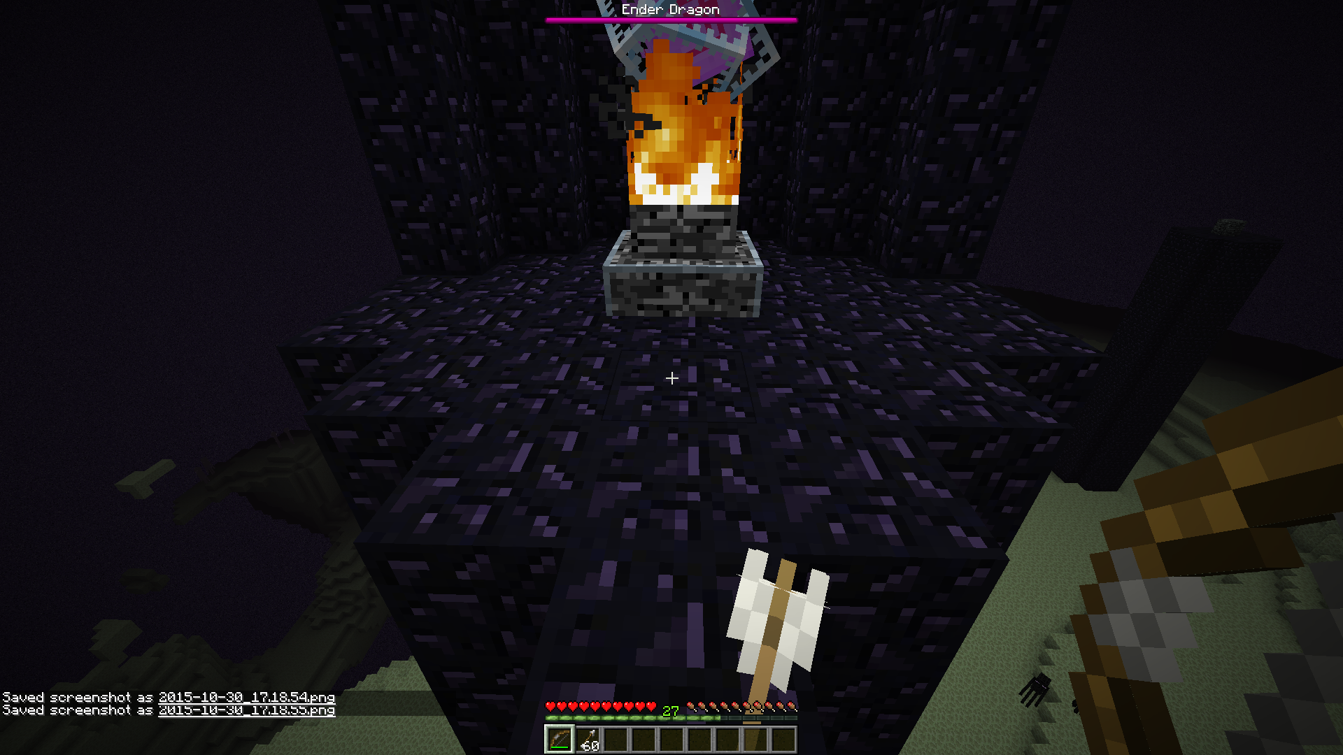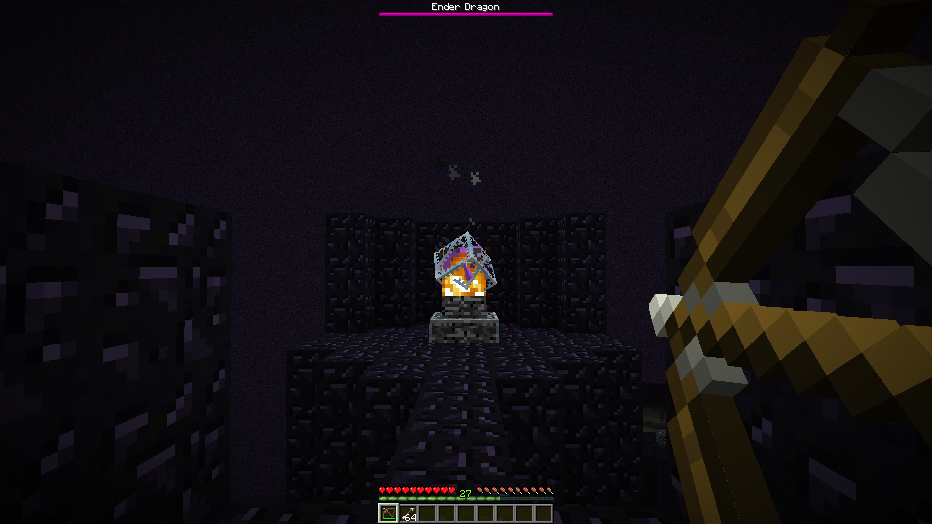 We tried to destroy the crystals on our SMP server with bows, fists, picks and swords. None of those methods worked.