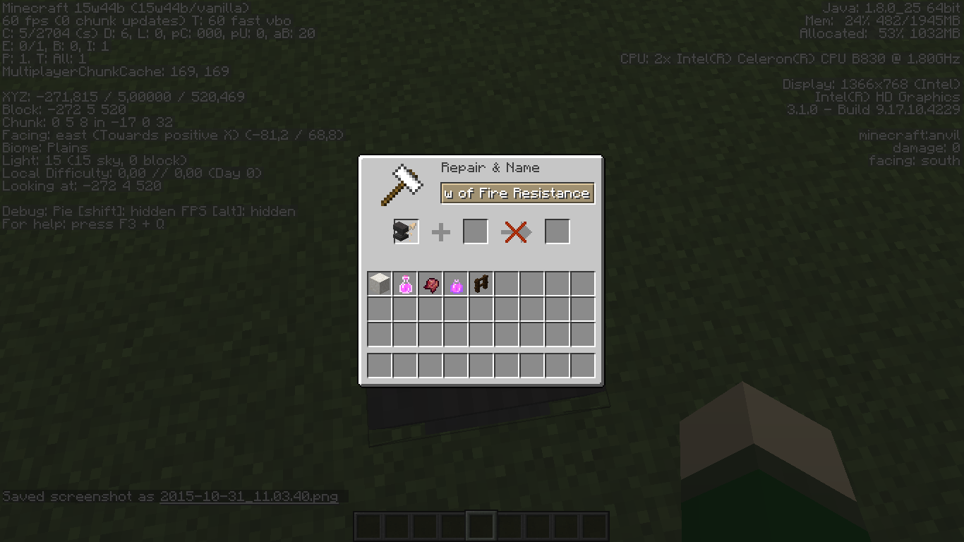 If I switch the Arrow of fire resistance with an anvil without taking the Arrow of fire resistance before, it will be written "l" with characters missing as with the Arrow of fire resistance.