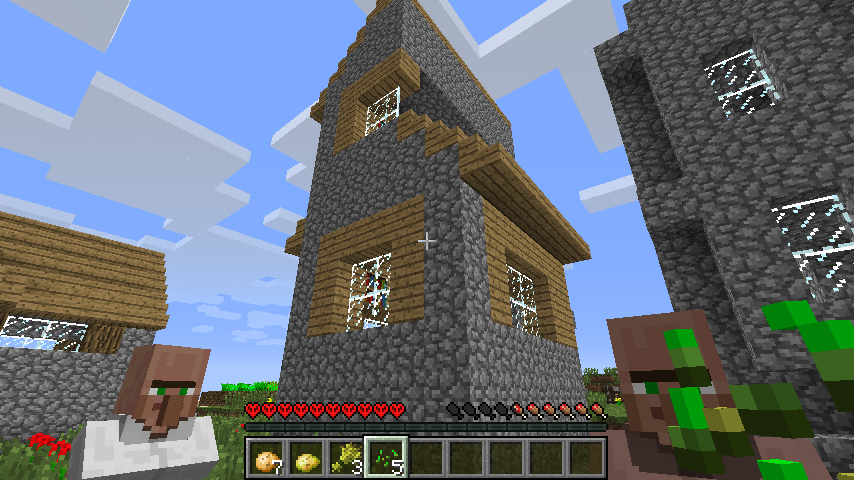 I found a village which generated very strangely. The library was cut in half, and partially on top of another building. (See picture) Unfortunately, I was playing in Hardcore, and couldn't check the seed before I died, so I can't help with duplicating it. I apologize if this was already reported, but I couldn't find it on the website.