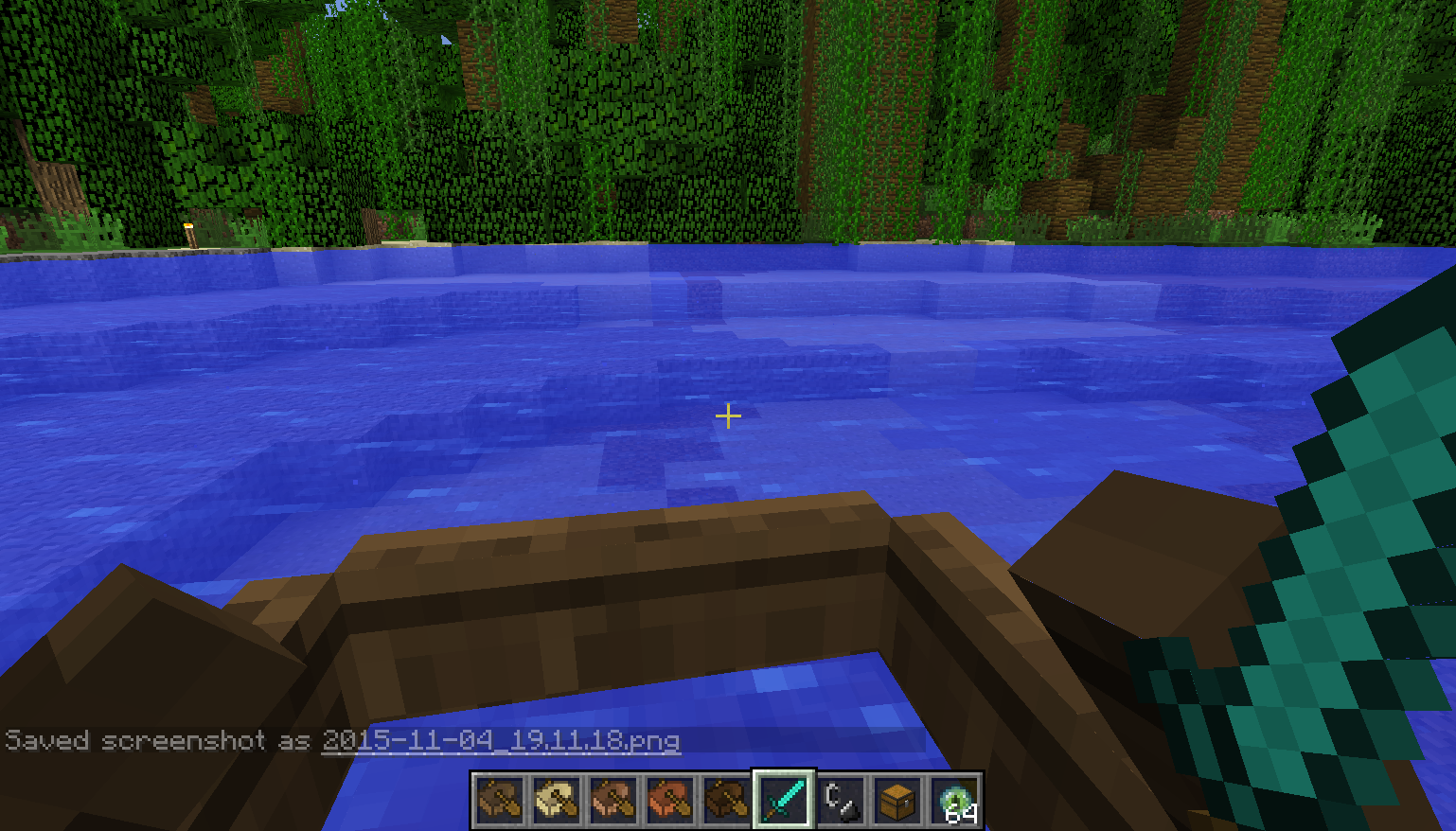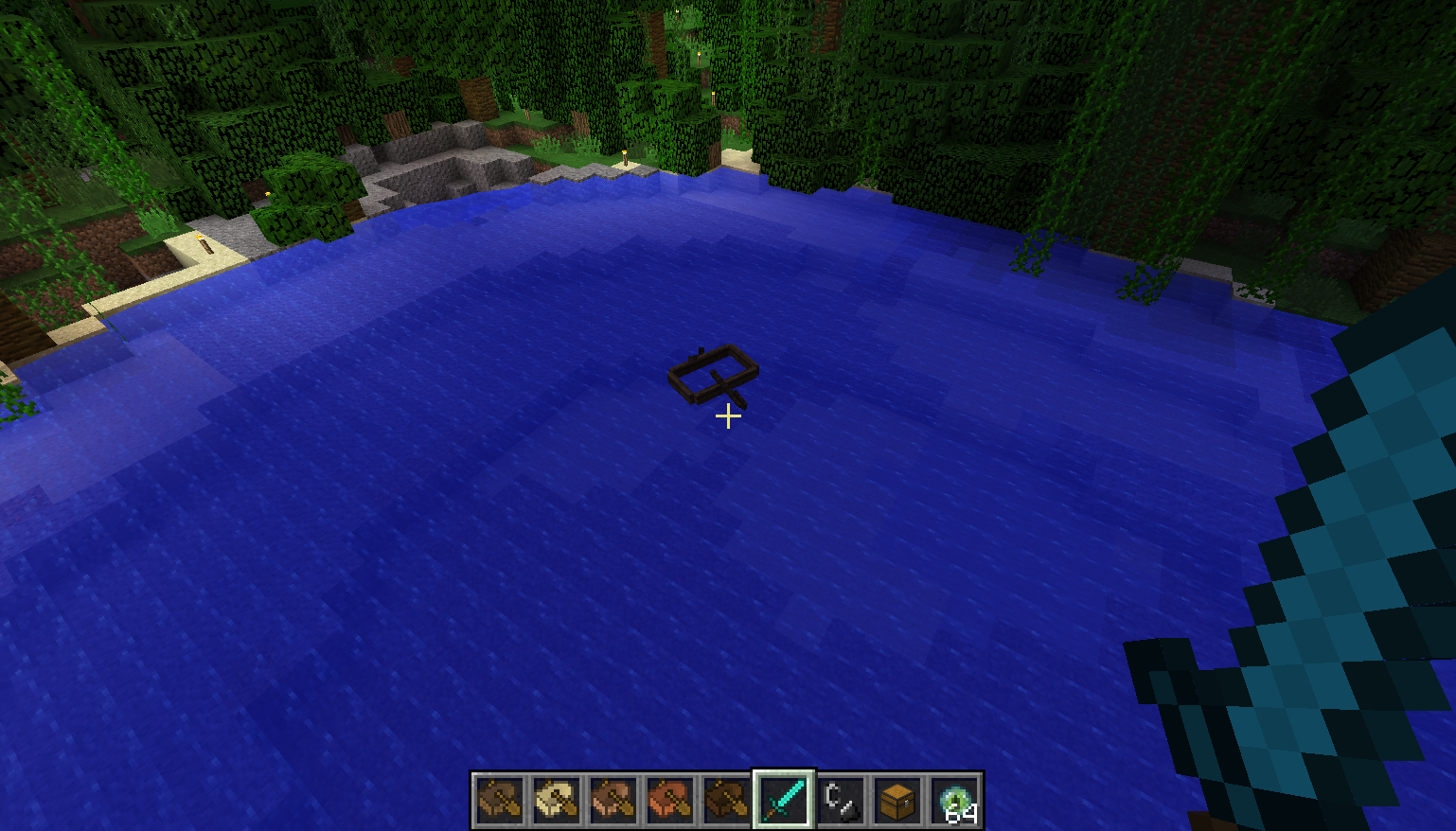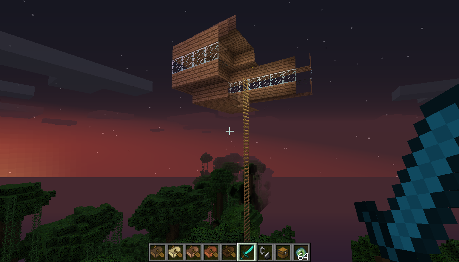 I then went and visited the base I used to live at in a jungle biome (there's a lot of ladders) and while I was trying to get up into the second level of my tree house, I was stuck on the ladder, repeatedly and quickly, going up and down this ladder. I couldn't make a GIF unfortunately for you to see, but it has never happened to me before. It's like I was lagging on the ladder. (Picture also attached.)