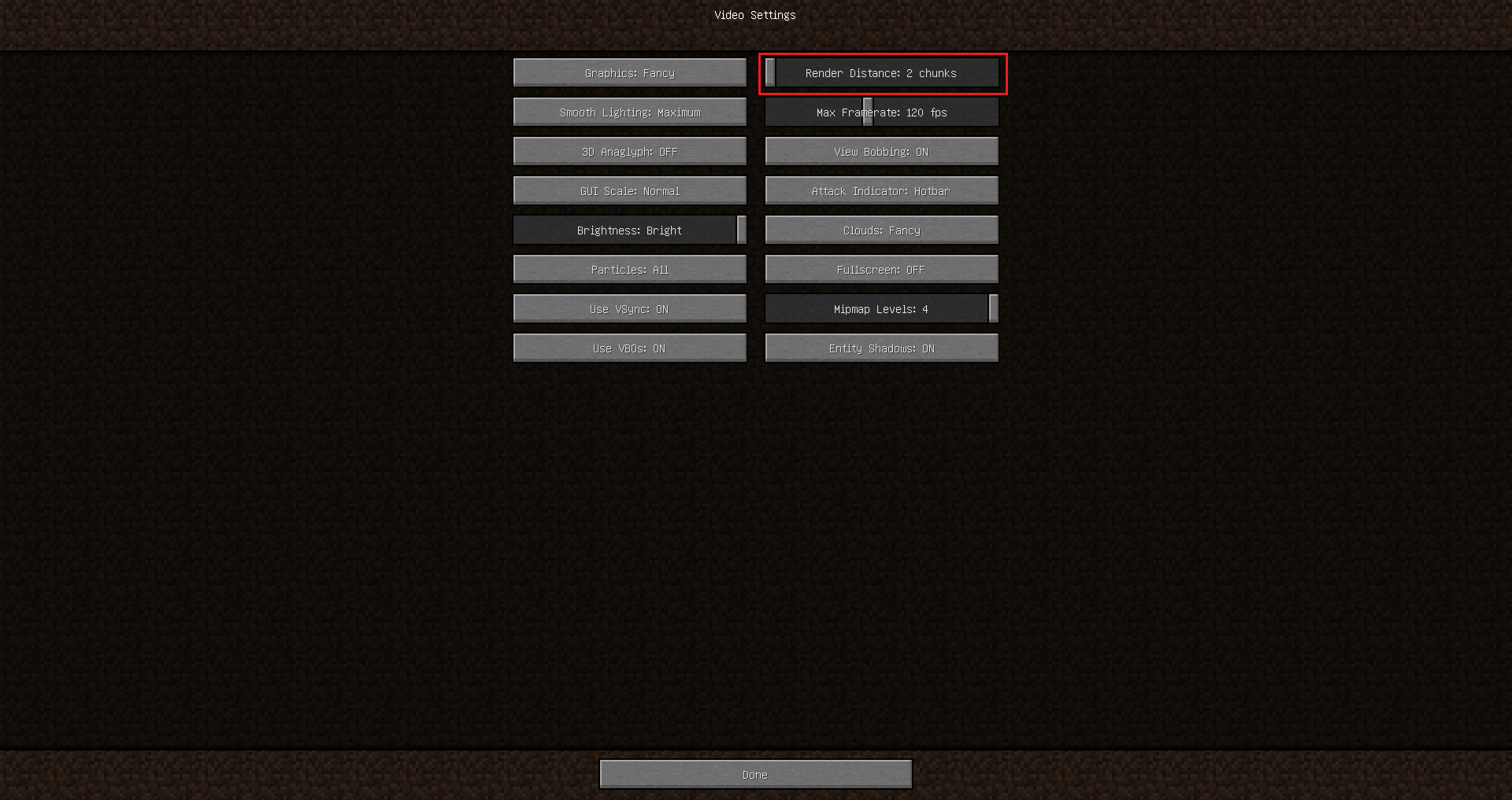 1. Render Distance = 2 chunks