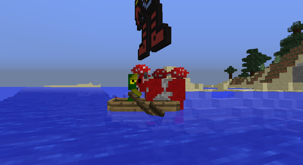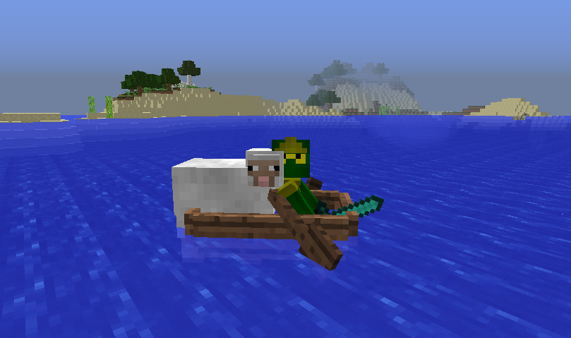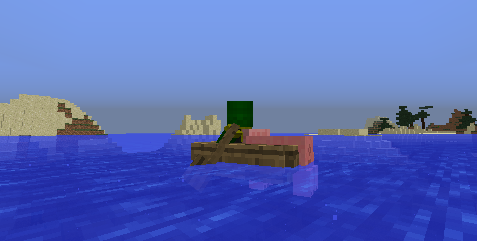 While riding in the passenger seat of a boat, the model of some mobs do not properly fit within the boat. This causes them to appear with their legs hanging out the back of the boat, which looks extremely awkward. This does not seem to be intended behavior, as the player always fits within the boat properly, and mobs do as well when they are by themselves.