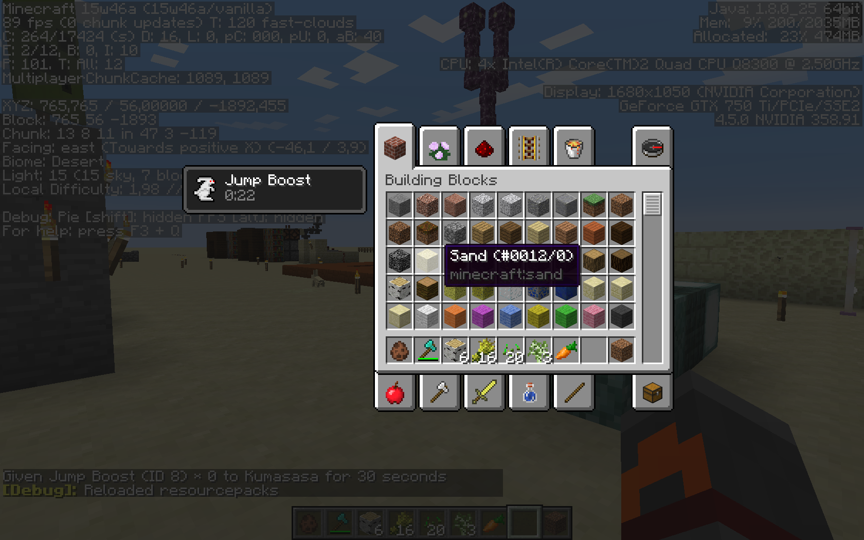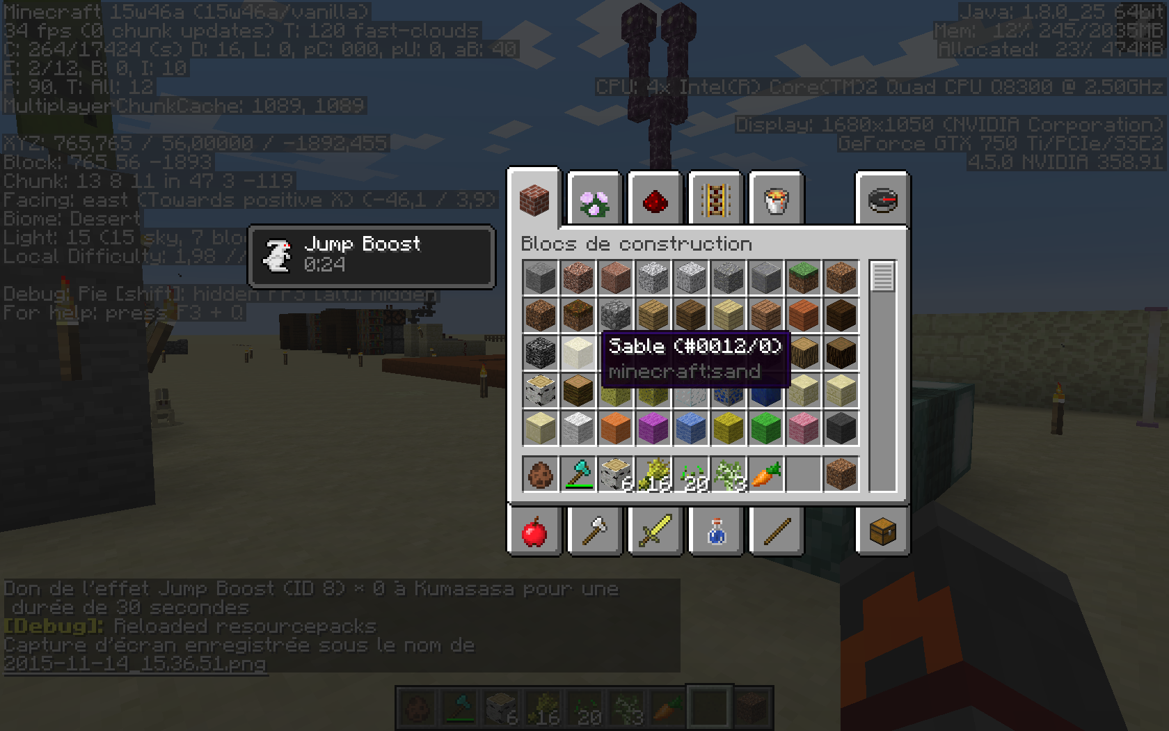 If I have a jump boost effect it's written "Jump Boost" in yellow.