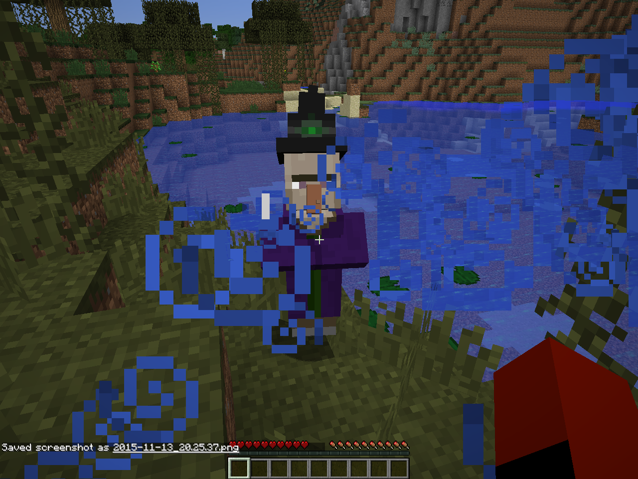 2. Go into survival and walk up to the witch.