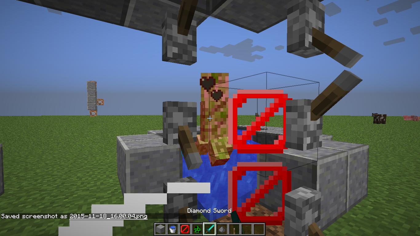 In the screenshot you can see me hitting a creeper through a corner. The white particle can be seen (of hitting a mob)
