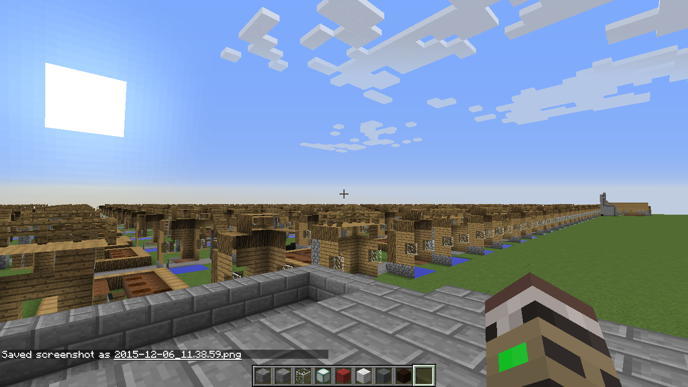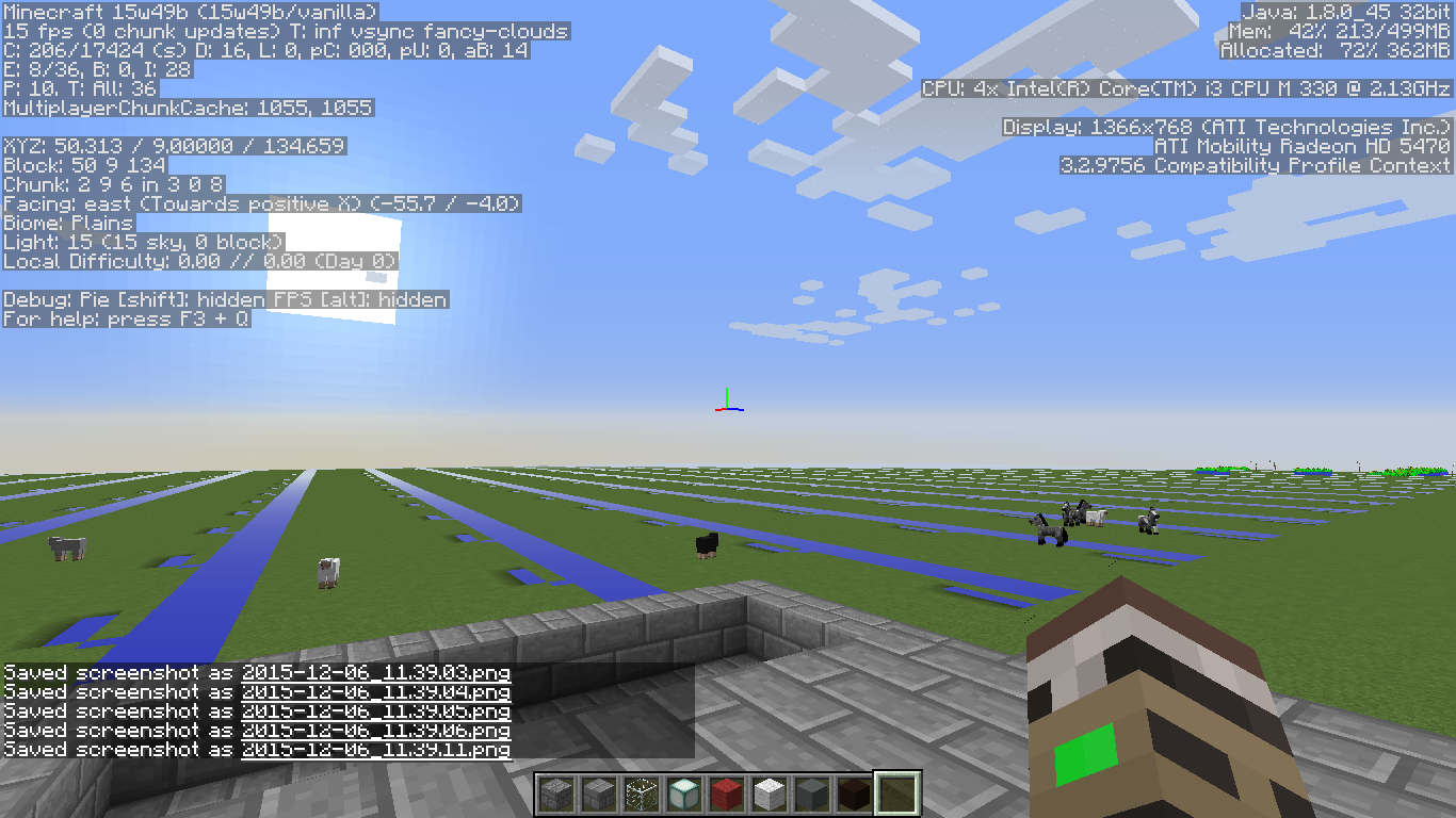 So, I was just playing minecraft as normal. In creative mode, in a superflat world. It happens in a normal world as well. I have my view distance at max, and this happens, View Dist. 8+. In Minecraft 15w49b.