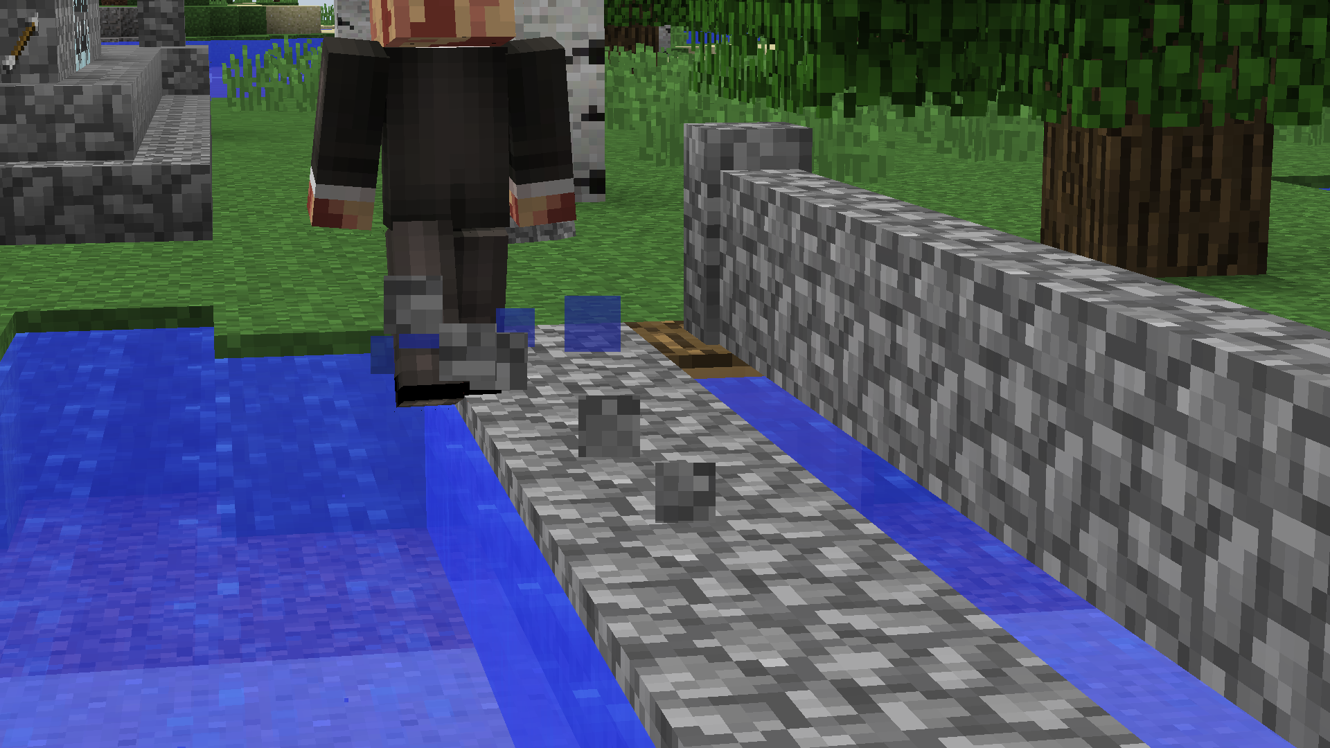 3. Look down and run and there should be water particles when you run on the block that you used (for example cobblestone).