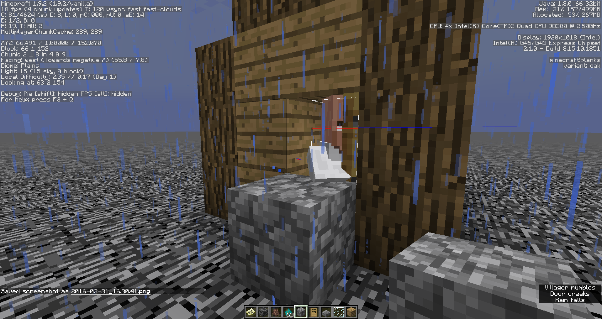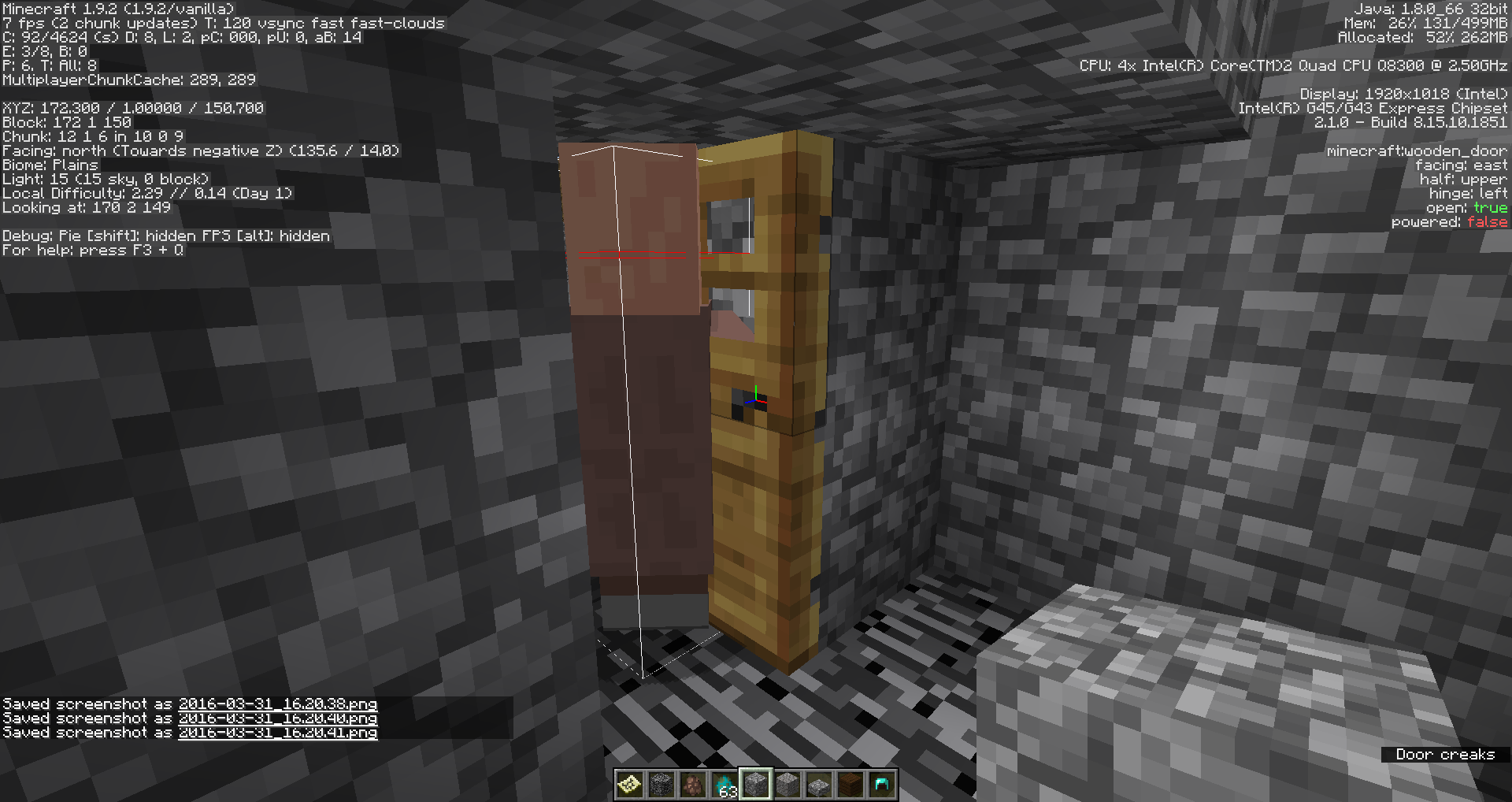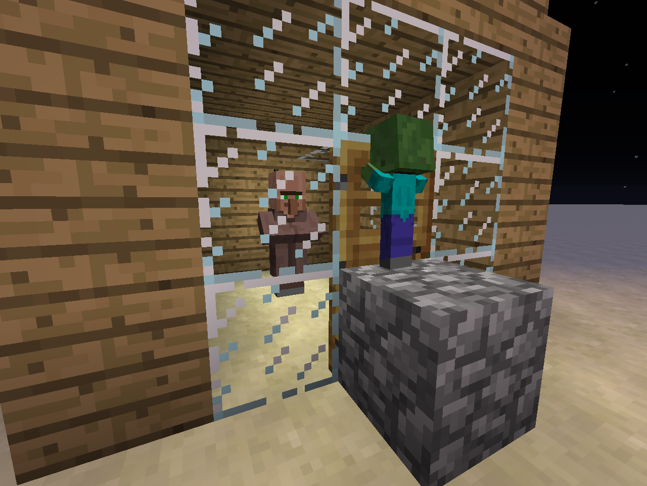 I have also observed that if you place two doors with one in front of the other in a house, and a Villager tries to get in, the Villager continuously opens and closes the valent door, and the Villager never actually gets in the house, though in the technical aspects, the Villager would be inside the house, because the Villager is between the two doors, I'm going to create a new ticket for that issue.