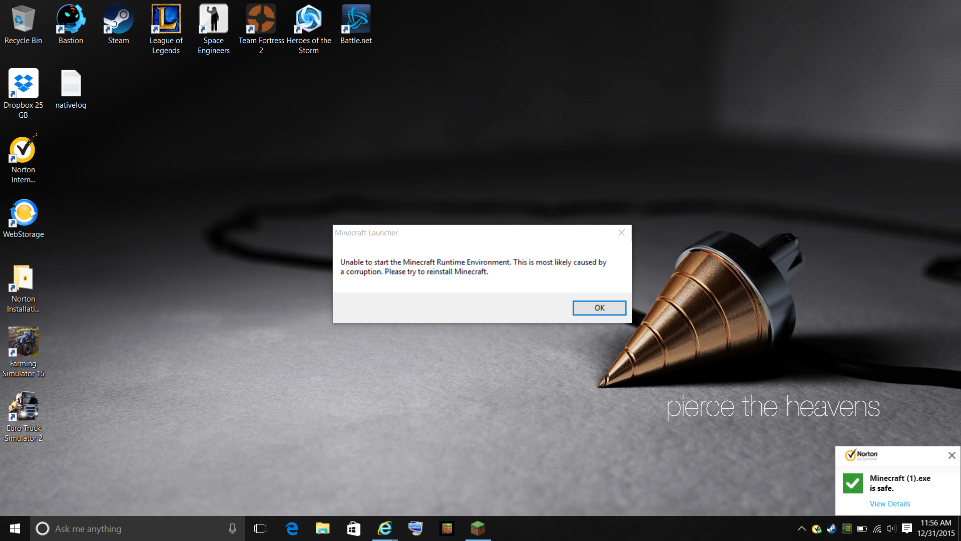 [12:00:48 INFO]: Half command: C:\Program Files (x86)\Minecraft\runtime\jre-x64\1.8.0_25\bin\javaw.exe -XX:HeapDumpPath=MojangTricksIntelDriversForPerformance_javaw.exe_minecraft.exe.heapdump -Xmx1G -XX:+UseConcMarkSweepGC -XX:+CMSIncrementalMode -XX:-UseAdaptiveSizePolicy -Xmn128M -Dos.name=Windows 10 -Dos.version=10.0 -Djava.library.path=C:\Users\Jordan the great!\AppData\Roaming\.minecraft\versions\1.8.9\1.8.9-natives-430855286476399 -cp C:\Users\Jordan the great!\AppData\Roaming\.minecraft\libraries\oshi-project\oshi-core\1.1\oshi-core-1.1.jar;C:\Users\Jordan the great!\AppData\Roaming\.minecraft\libraries\net\java\dev\jna\jna\3.4.0\jna-3.4.0.jar;C:\Users\Jordan the great!\AppData\Roaming\.minecraft\libraries\net\java\dev\jna\platform\3.4.0\platform-3.4.0.jar;C:\Users\Jordan the great!\AppData\Roaming\.minecraft\libraries\com\ibm\icu\icu4j-core-mojang\51.2\icu4j-core-mojang-51.2.jar;C:\Users\Jordan the great!\AppData\Roaming\.minecraft\libraries\net\sf\jopt-simple\jopt-simple\4.6\jopt-simple-4.6.jar;C:\Users\Jordan the great!\AppData\Roaming\.minecraft\libraries\com\paulscode\codecjorbis\20101023\codecjorbis-20101023.jar;C:\Users\Jordan the great!\AppData\Roaming\.minecraft\libraries\com\paulscode\codecwav\20101023\codecwav-20101023.jar;C:\Users\Jordan the great!\AppData\Roaming\.minecraft\libraries\com\paulscode\libraryjavasound\20101123\libraryjavasound-20101123.jar;C:\Users\Jordan the great!\AppData\Roaming\.minecraft\libraries\com\paulscode\librarylwjglopenal\20100824\librarylwjglopenal-20100824.jar;C:\Users\Jordan the great!\AppData\Roaming\.minecraft\libraries\com\paulscode\soundsystem\20120107\soundsystem-20120107.jar;C:\Users\Jordan the great!\AppData\Roaming\.minecraft\libraries\io\netty\netty-all\4.0.23.Final\netty-all-4.0.23.Final.jar;C:\Users\Jordan the great!\AppData\Roaming\.minecraft\libraries\com\google\guava\guava\17.0\guava-17.0.jar;C:\Users\Jordan the great!\AppData\Roaming\.minecraft\libraries\org\apache\commons\commons-lang3\3.3.2\commons-lang3-3.3.2.jar;C:\Users\Jordan the great!\AppData\Roaming\.minecraft\libraries\commons-io\commons-io\2.4\commons-io-2.4.jar;C:\Users\Jordan the great!\AppData\Roaming\.minecraft\libraries\commons-codec\commons-codec\1.9\commons-codec-1.9.jar;C:\Users\Jordan the great!\AppData\Roaming\.minecraft\libraries\net\java\jinput\jinput\2.0.5\jinput-2.0.5.jar;C:\Users\Jordan the great!\AppData\Roaming\.minecraft\libraries\net\java\jutils\jutils\1.0.0\jutils-1.0.0.jar;C:\Users\Jordan the great!\AppData\Roaming\.minecraft\libraries\com\google\code\gson\gson\2.2.4\gson-2.2.4.jar;C:\Users\Jordan the great!\AppData\Roaming\.minecraft\libraries\com\mojang\authlib\1.5.21\authlib-1.5.21.jar;C:\Users\Jordan the great!\AppData\Roaming\.minecraft\libraries\com\mojang\realms\1.7.48\realms-1.7.48.jar;C:\Users\Jordan the great!\AppData\Roaming\.minecraft\libraries\org\apache\commons\commons-compress\1.8.1\commons-compress-1.8.1.jar;C:\Users\Jordan the great!\AppData\Roaming\.minecraft\libraries\org\apache\httpcomponents\httpclient\4.3.3\httpclient-4.3.3.jar;C:\Users\Jordan the great!\AppData\Roaming\.minecraft\libraries\commons-logging\commons-logging\1.1.3\commons-logging-1.1.3.jar;C:\Users\Jordan the great!\AppData\Roaming\.minecraft\libraries\org\apache\httpcomponents\httpcore\4.3.2\httpcore-4.3.2.jar;C:\Users\Jordan the great!\AppData\Roaming\.minecraft\libraries\org\apache\logging\log4j\log4j-api\2.0-beta9\log4j-api-2.0-beta9.jar;C:\Users\Jordan the great!\AppData\Roaming\.minecraft\libraries\org\apache\logging\log4j\log4j-core\2.0-beta9\log4j-core-2.0-beta9.jar;C:\Users\Jordan the great!\AppData\Roaming\.minecraft\libraries\org\lwjgl\lwjgl\lwjgl\2.9.4-nightly-20150209\lwjgl-2.9.4-nightly-20150209.jar;C:\Users\Jordan the great!\AppData\Roaming\.minecraft\libraries\org\lwjgl\lwjgl\lwjgl_util\2.9.4-nightly-20150209\lwjgl_util-2.9.4-nightly-20150209.jar;C:\Users\Jordan the great!\AppData\Roaming\.minecraft\libraries\tv\twitch\twitch\6.5\twitch-6.5.jar;C:\Users\Jordan the great!\AppData\Roaming\.minecraft\versions\1.8.9\1.8.9.jar net.minecraft.client.main.Main
