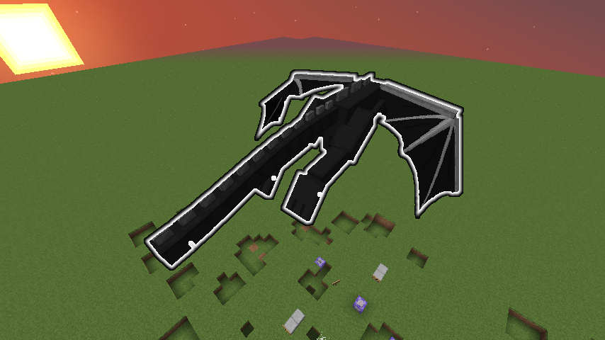 The pictures show that when a summoned Ender Dragon has the Glowing effect, it will have little white pixelations in the second membrane of both wings, all 4 feet and sometimes the tail when moving.