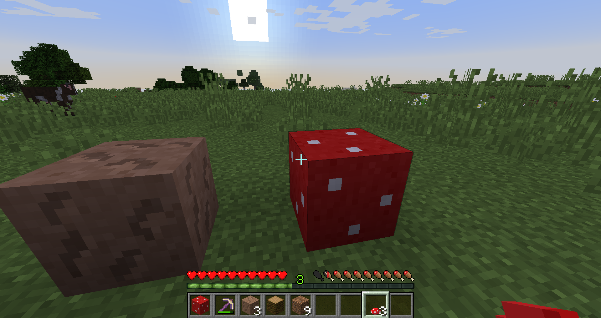 → In Creative you get a red mushroom plant; in Survival it does not move the block to your hotbar