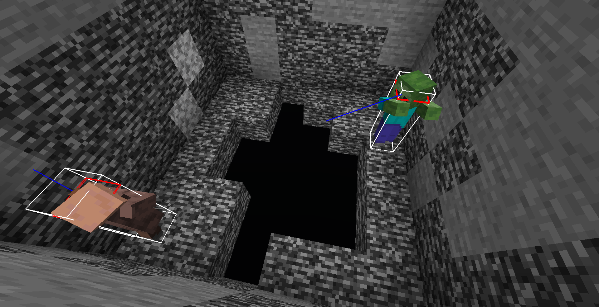 While experimenting in my snapshot world, I decided to have a little fun with a game of tag: Zombies and Villagers. However there were holes in the ground and I found this behavior odd: they would walk straight toward their target without regard of the obstacles. I have a video here:
