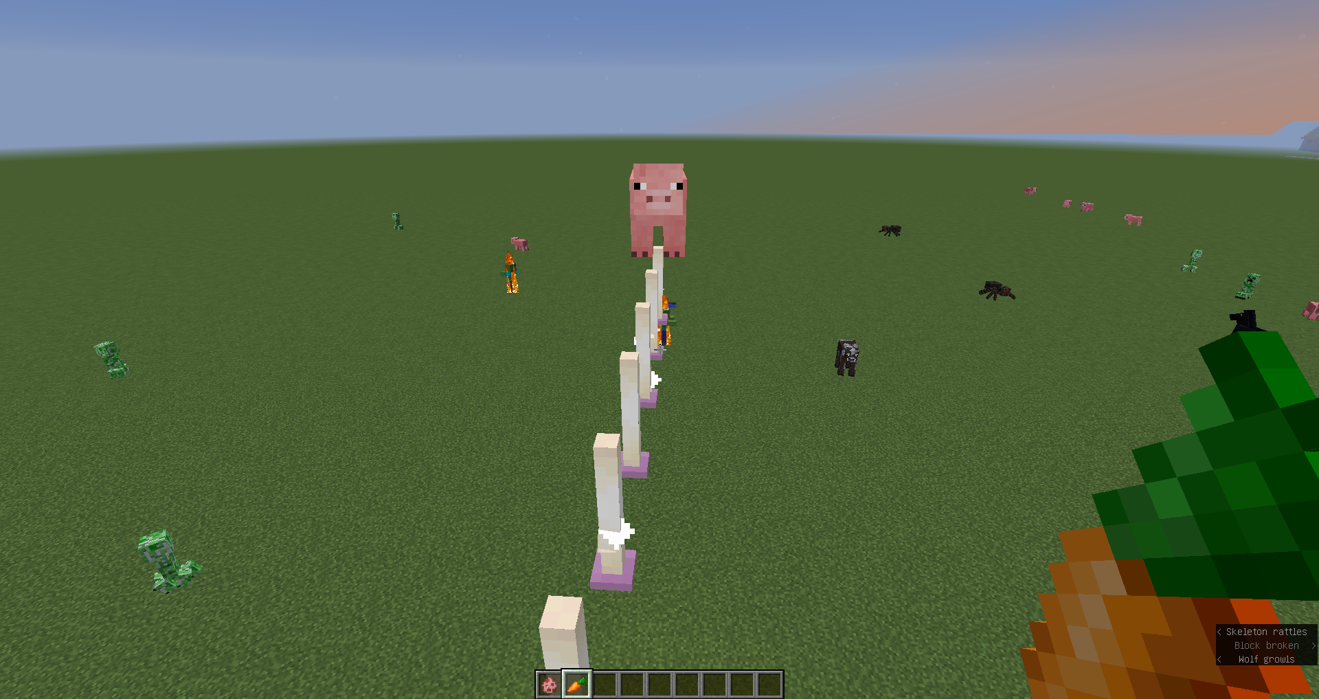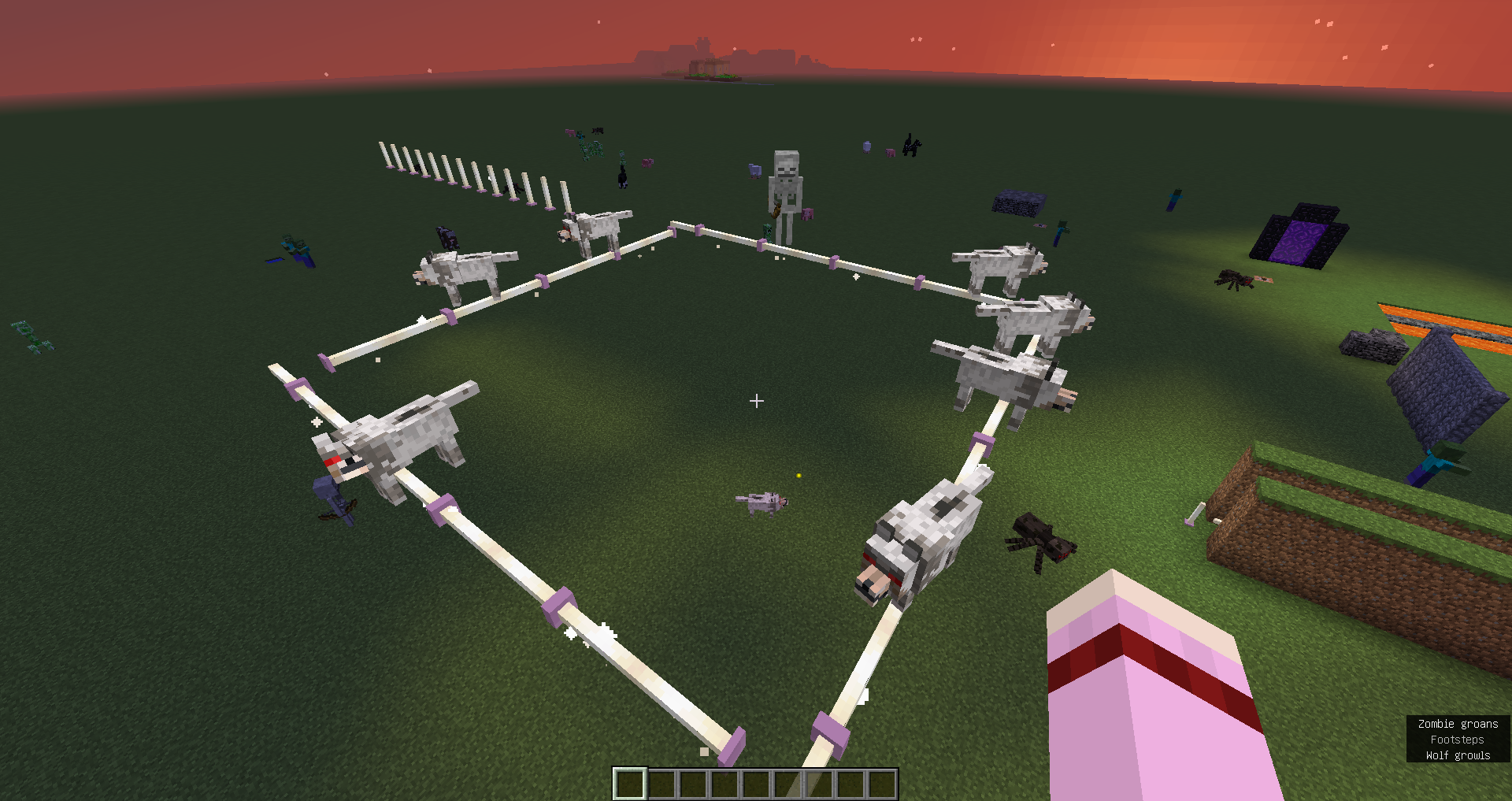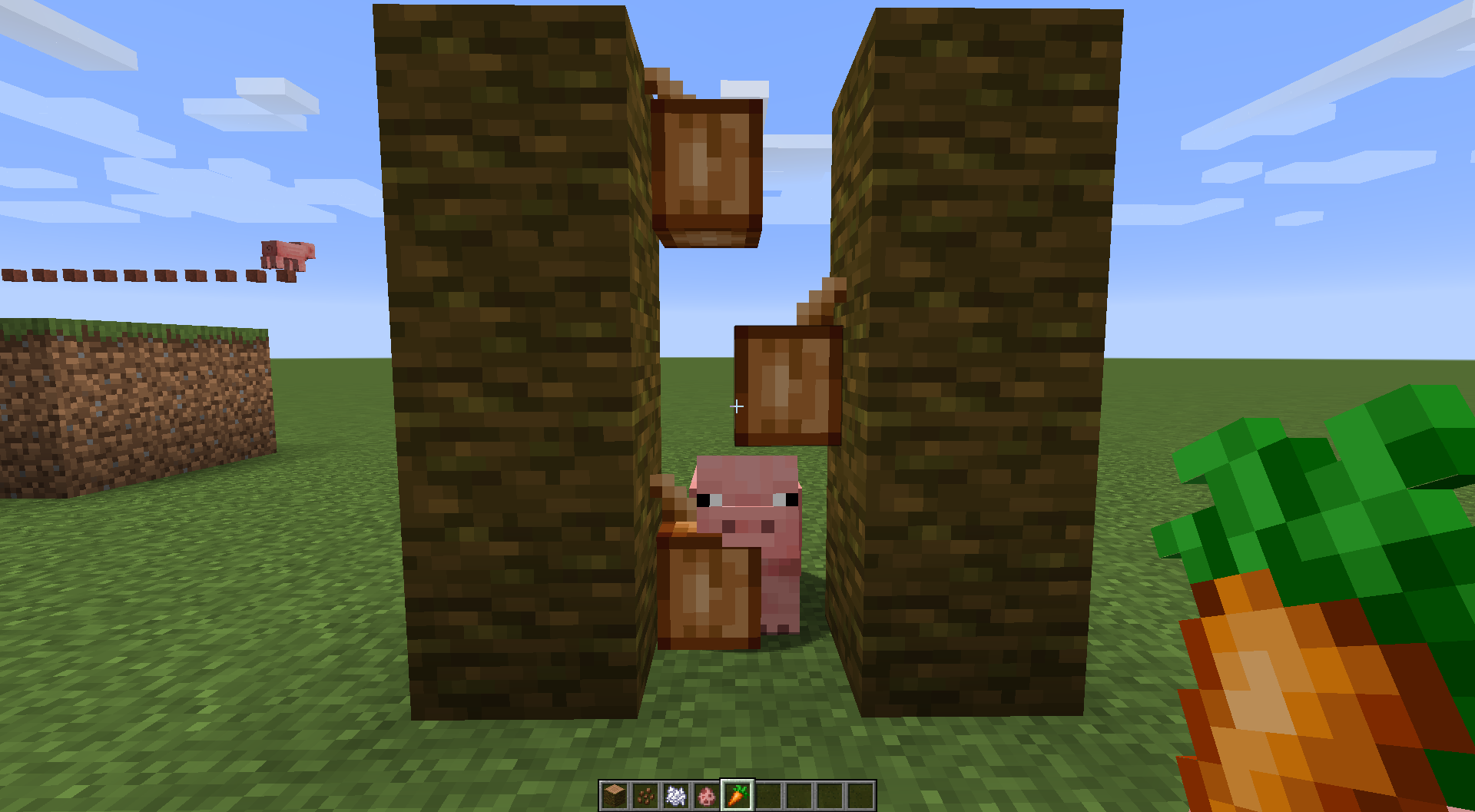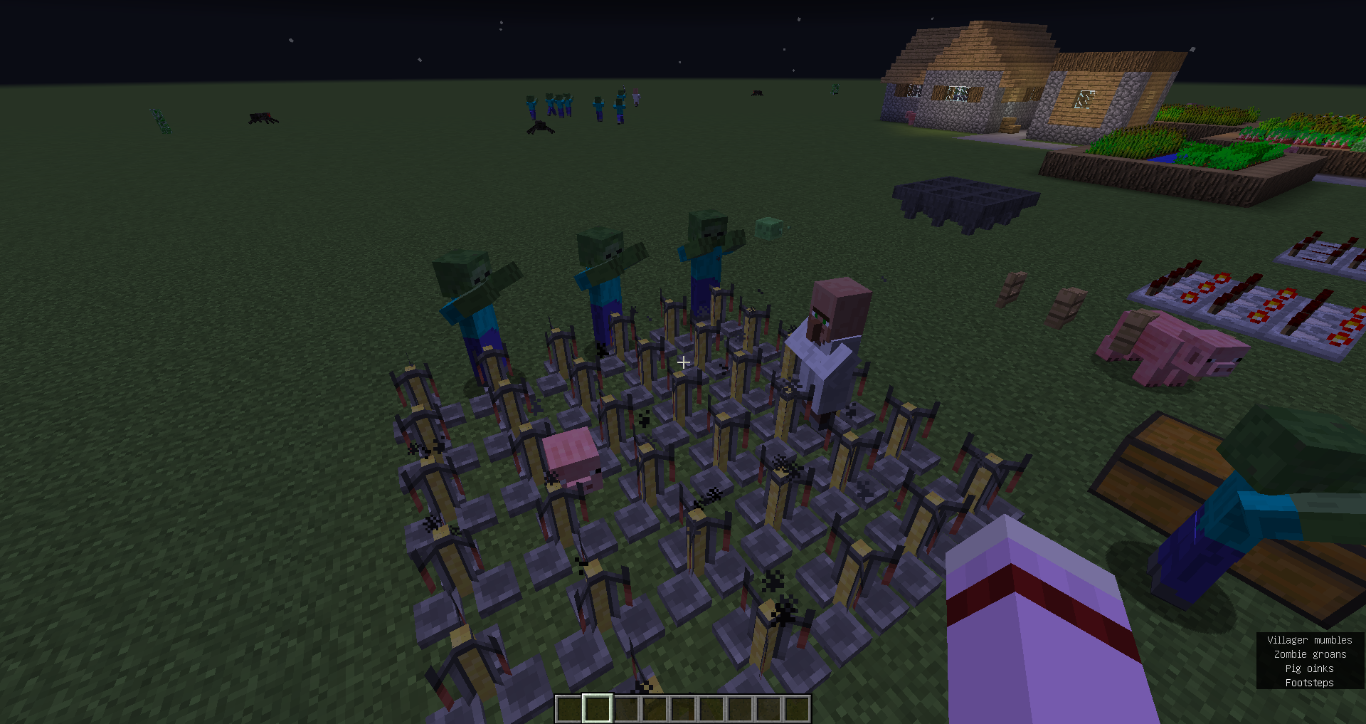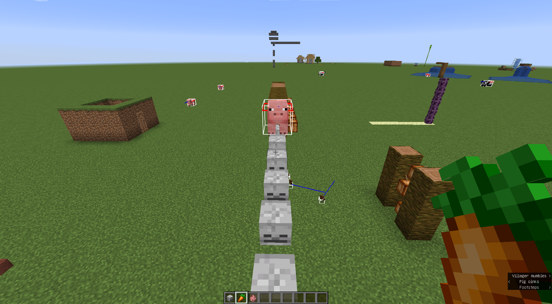 In this case, despite seemingly having a continuous path underneath them, the mob will spin in place in a failed attempt at finding the path to its target. A similar issue of path-finding appears to occur with the villager getting stuck inside a space enclosed with open trapdoors. It most likely happens since it's not taking into account the new 'open' state the trapdoor is in, this since the villager is just pushing himself towards the edge of the trapdoor instead of jumping.