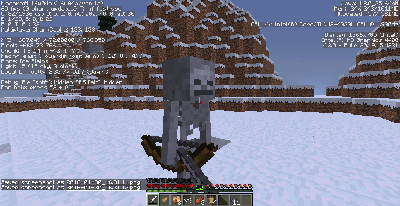 I was fighting mobs on hard mode when I encountered a frozen skeleton. It won't move, not even when punched. The only way to kill it is with a bow and shoot an arrow at it.