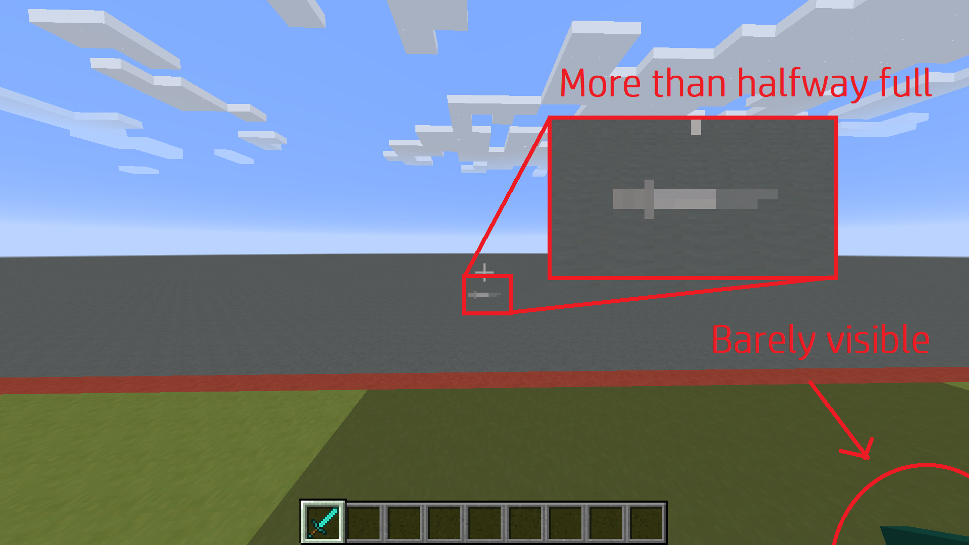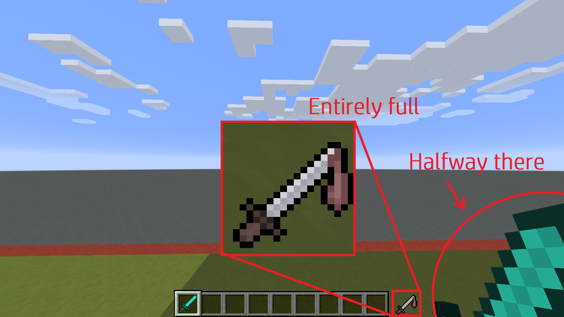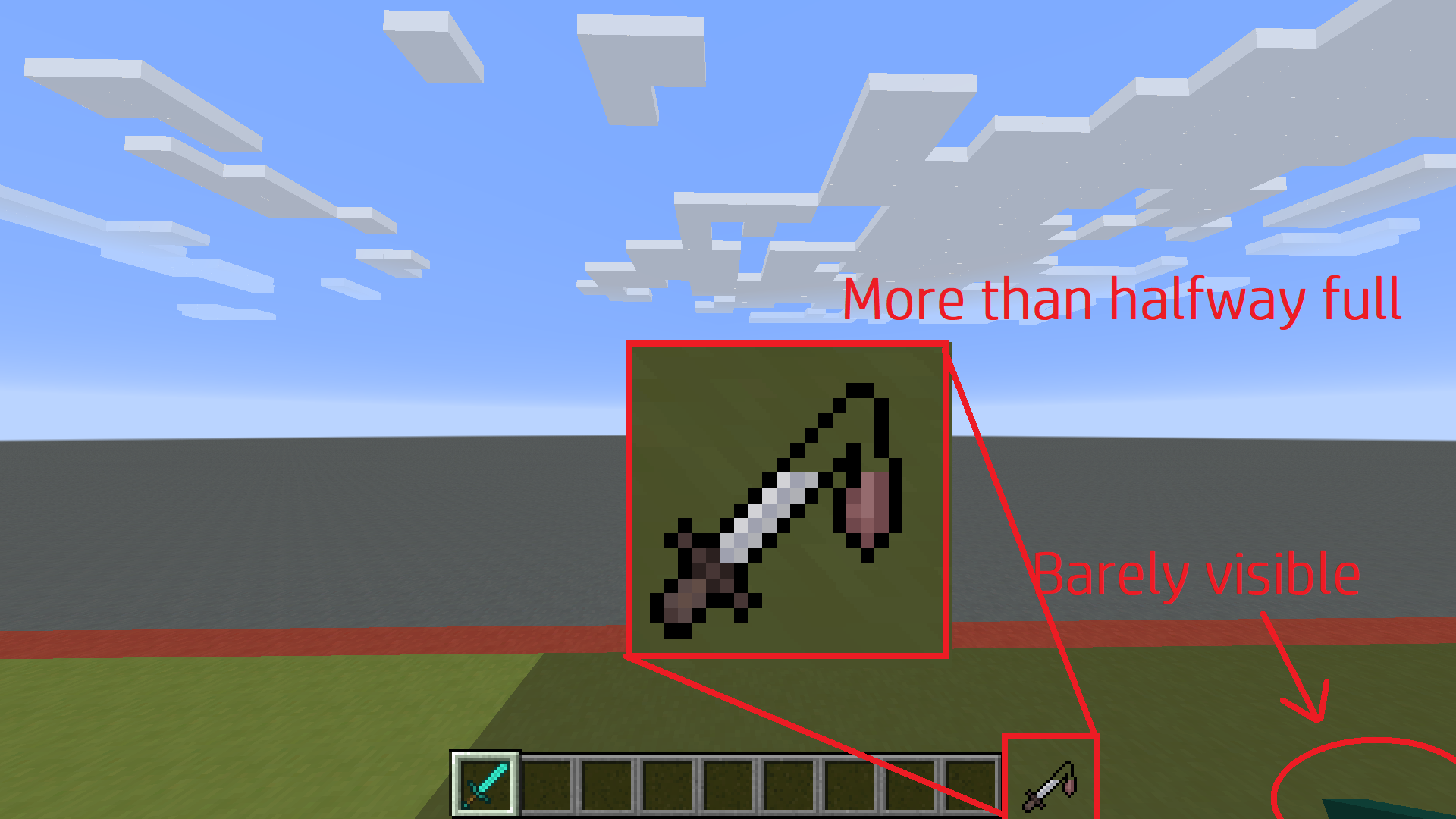 2. By the time the hotbar indicator is full, the item is still mostly off-screen. It continues raising for a moment while the indicator remains full: