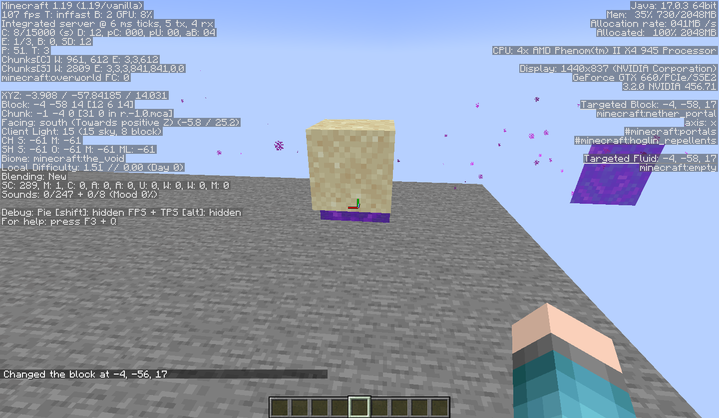 /setblock ~ ~2 ~3 sand→ ❌ The block falls straight through the nether portal block without being transported to/from the nether