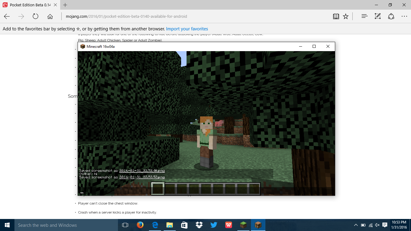 [23:20:40] [Server thread/INFO]: Starting integrated minecraft server version 16w04a