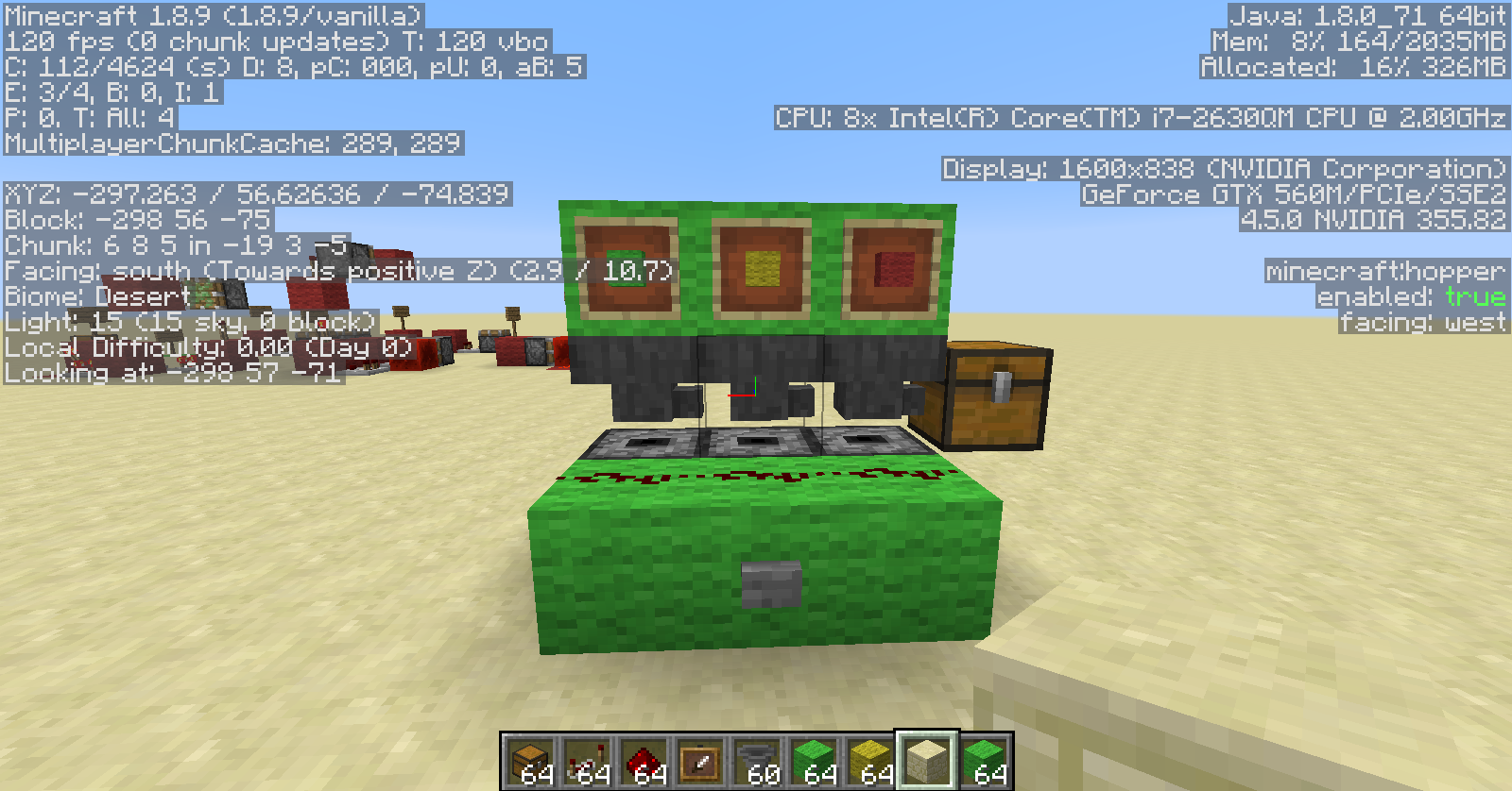 Note: Any manually glitched hopper will become normal upon reload if it is not in one of the default glitched locations found by method 2.