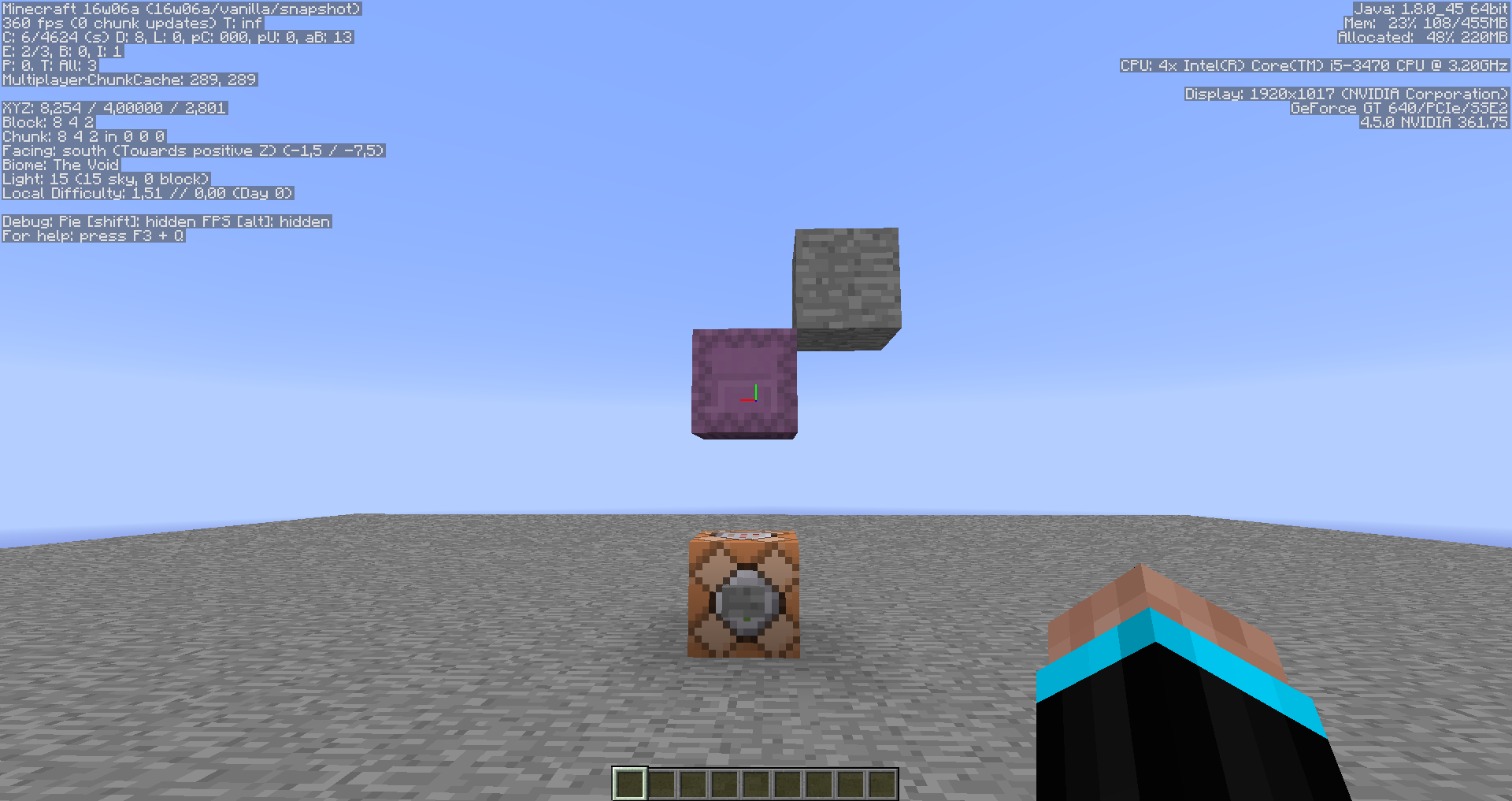 2. Activate the command block and fly atleast 80 blocks away, so that you can't see the shulker anymore.