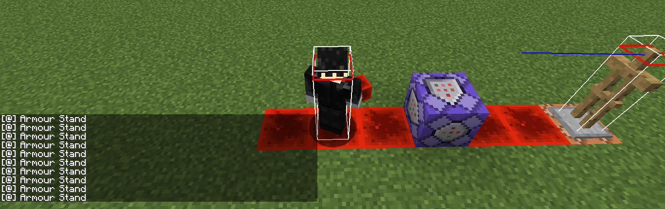 5. Notice the result is the pig, rather than the armor stand which is clearly closer and you are standing inside it directly at its location.