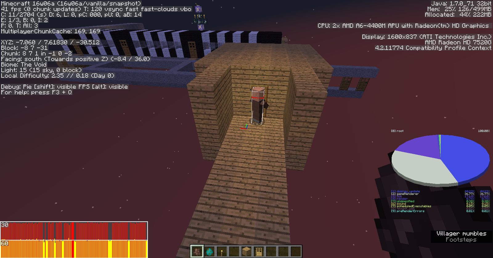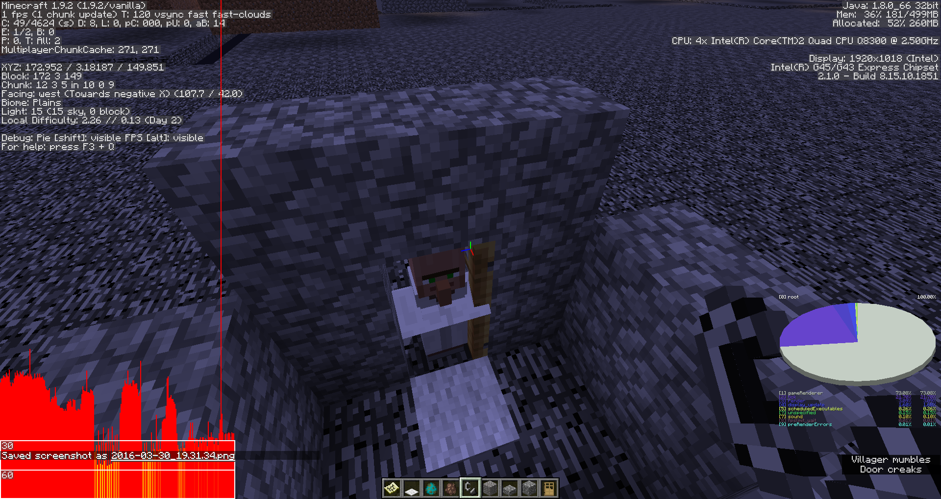 5. Notice the behavior of the Villager towards this. The villager should open the second door, but treats it as an obstruction, for the carpet, the Villager should ignore the house.