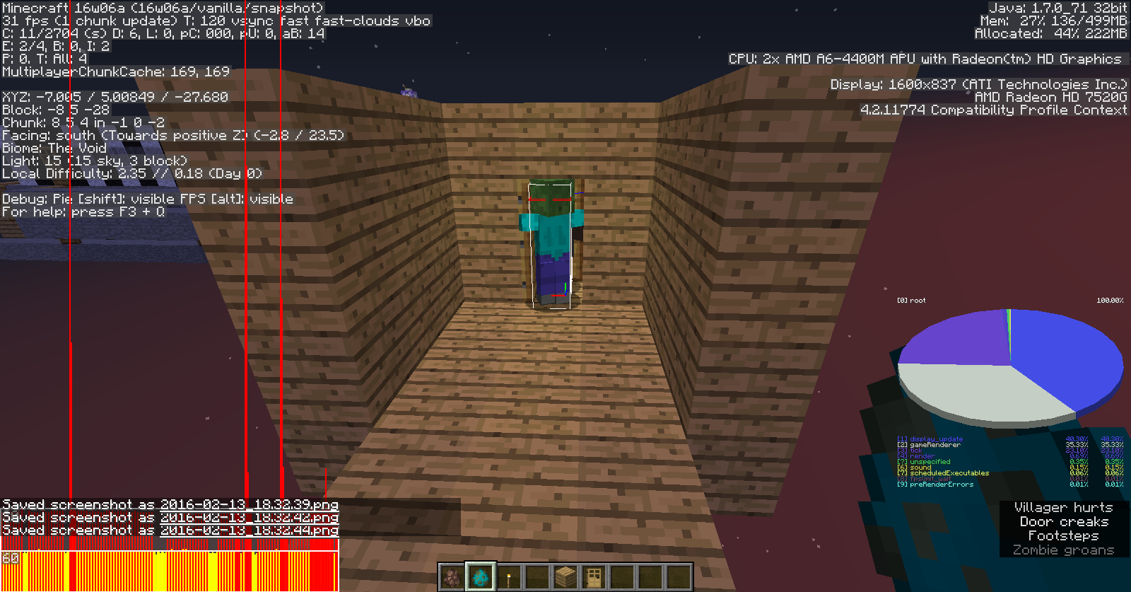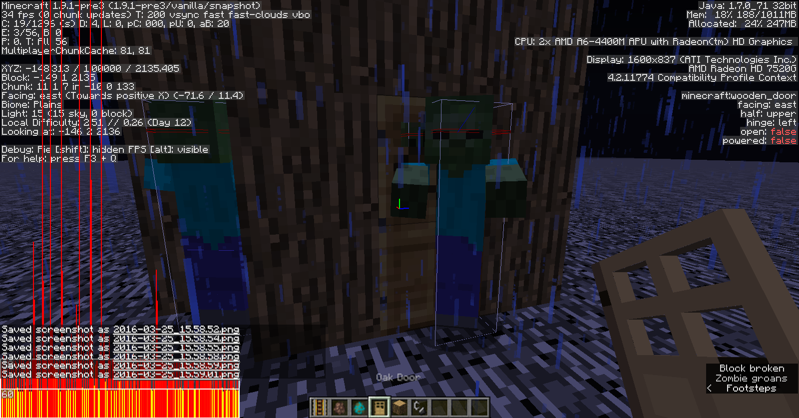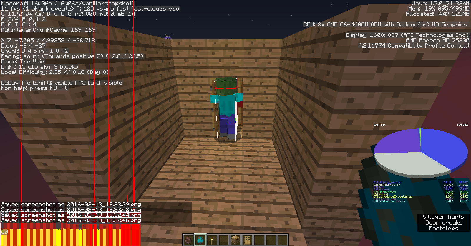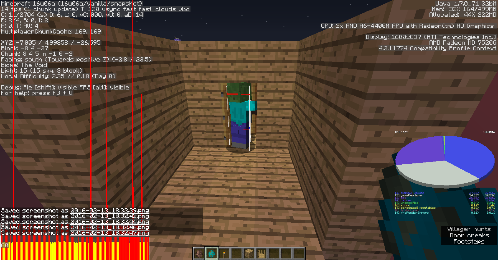6. If it is escaping the Zombie, as shown in the screenshots, the Zombie will attack the Villager, even through closed doors, and the Villager dies, which the Zombie attacking through the door itself is another bug. See MC-2310 for more.