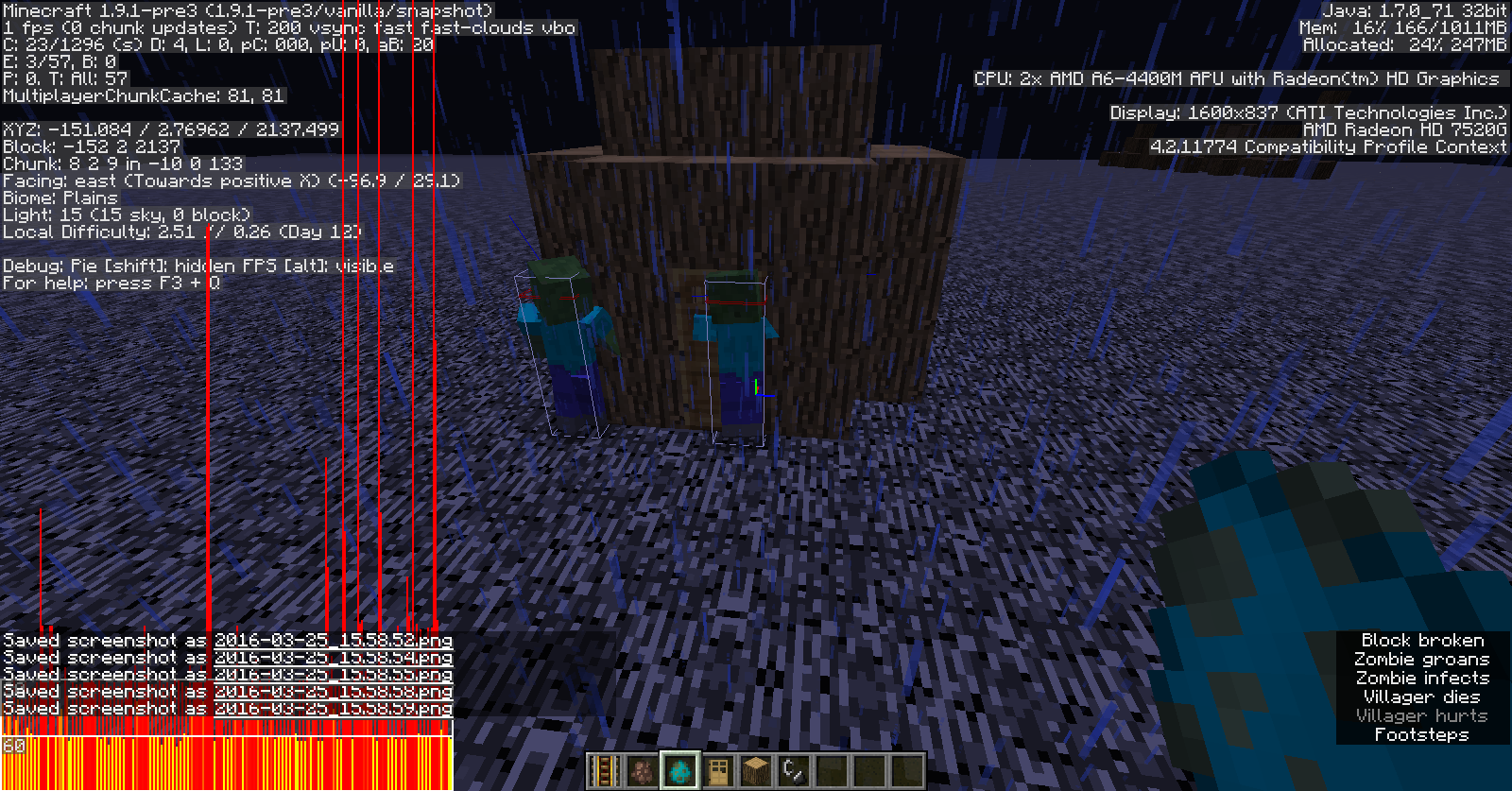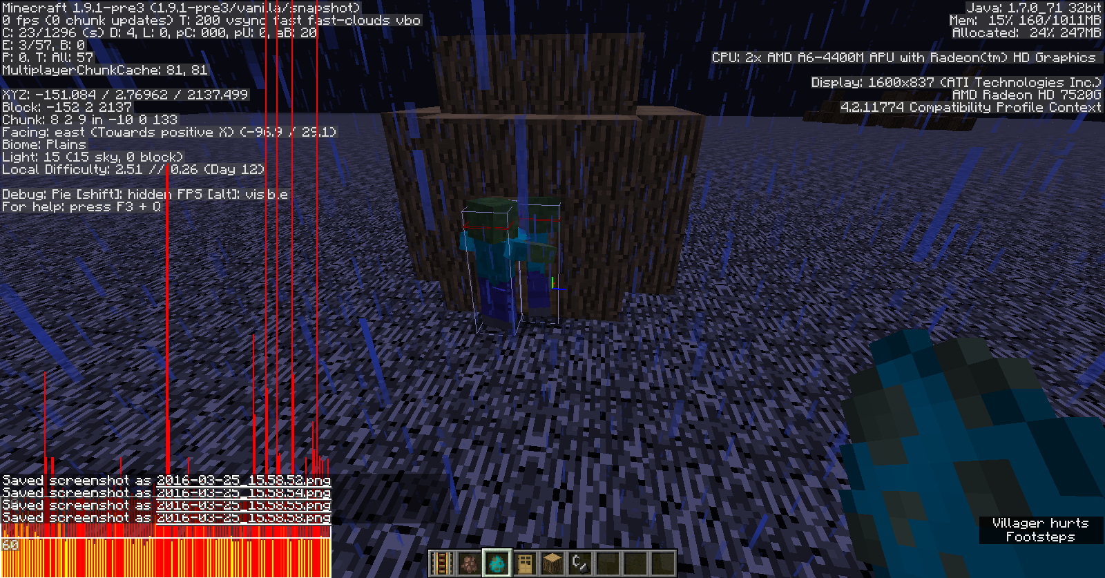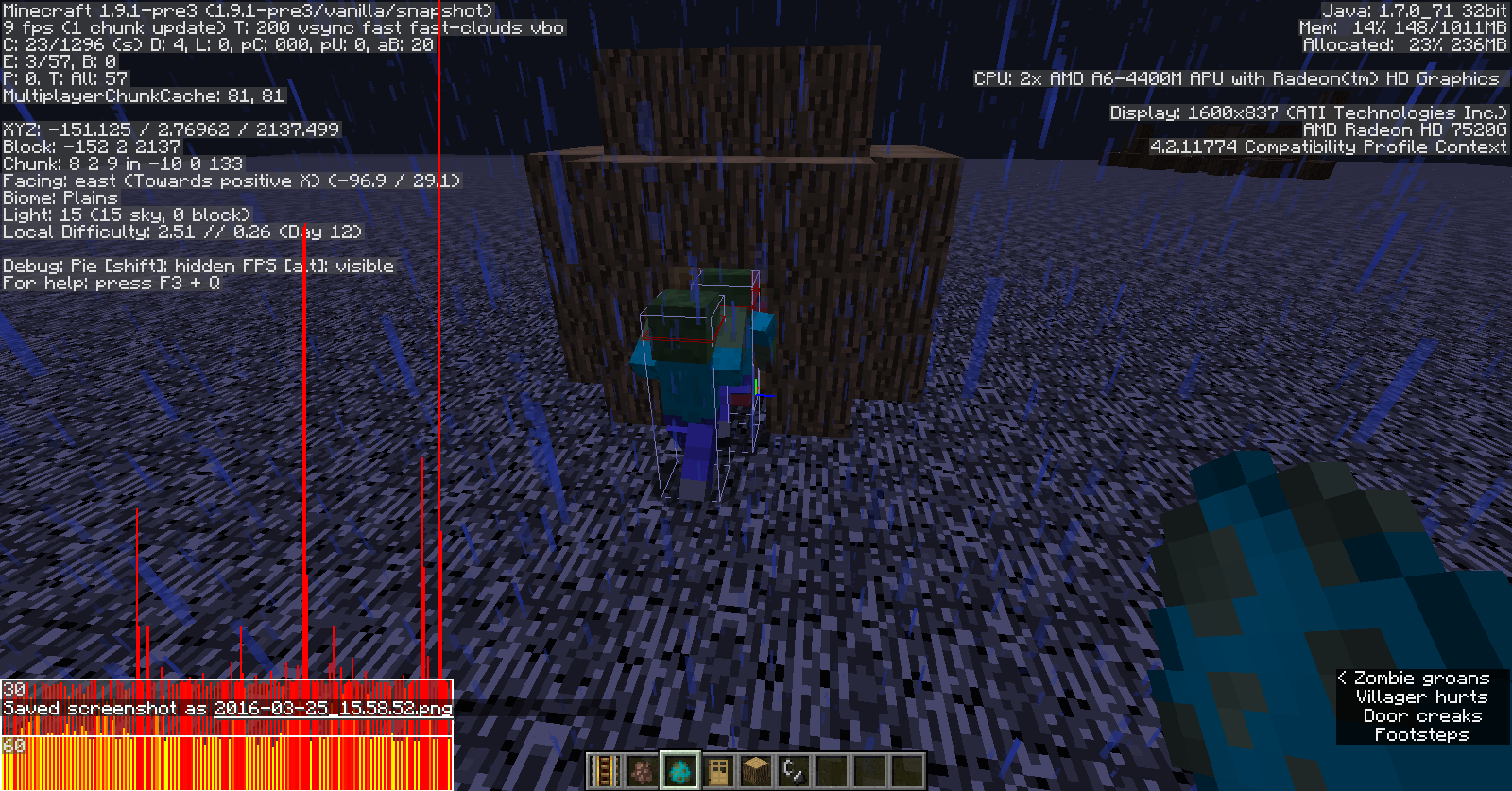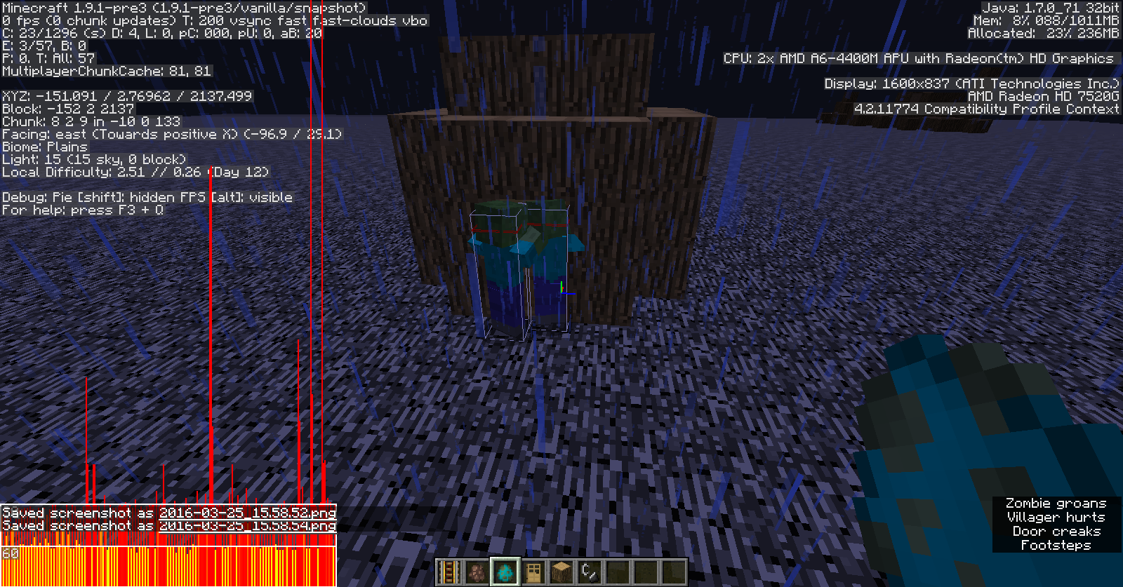 6. If it is escaping the Zombie, as shown in the screenshots, the Zombie will attack the Villager, even through closed doors, and the Villager dies, which the Zombie attacking through the door itself is another bug. See MC-2310 for more.