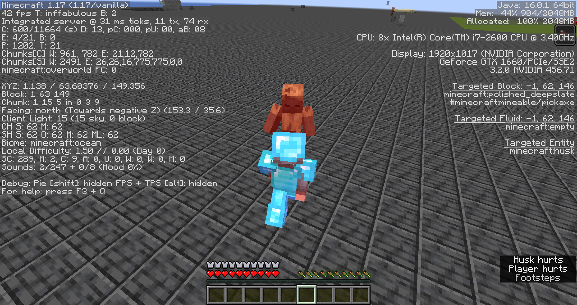 Switch to survival mode, allow the husk to attack you, and listen closely.