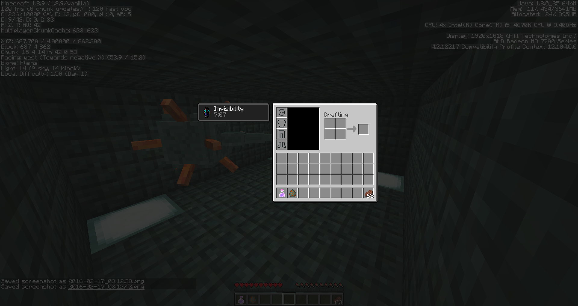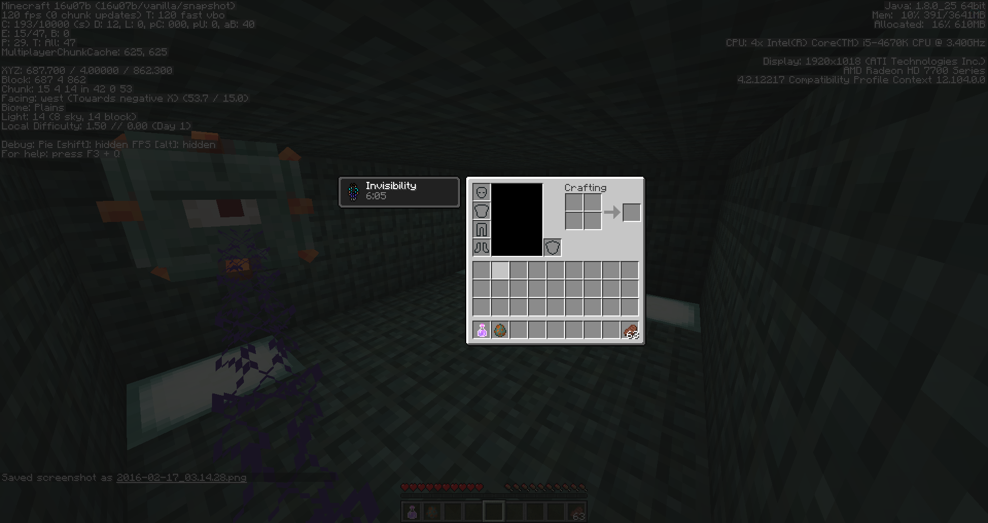 I noticed this problem when I made a survival world in 15w41b but I won't be going back to see when this bug first appeared and decided to wait a while to see if anyone would report it and seeing now that 1.9 is getting close to being released and still no one has reported this bug. I decided to make this report to get it fixed before the release. So in 1.8 when you used an invisibility potion, these guardians would not target you. In 1.9 snapshots they do target you which makes working on a guardian farm a lot more difficult.